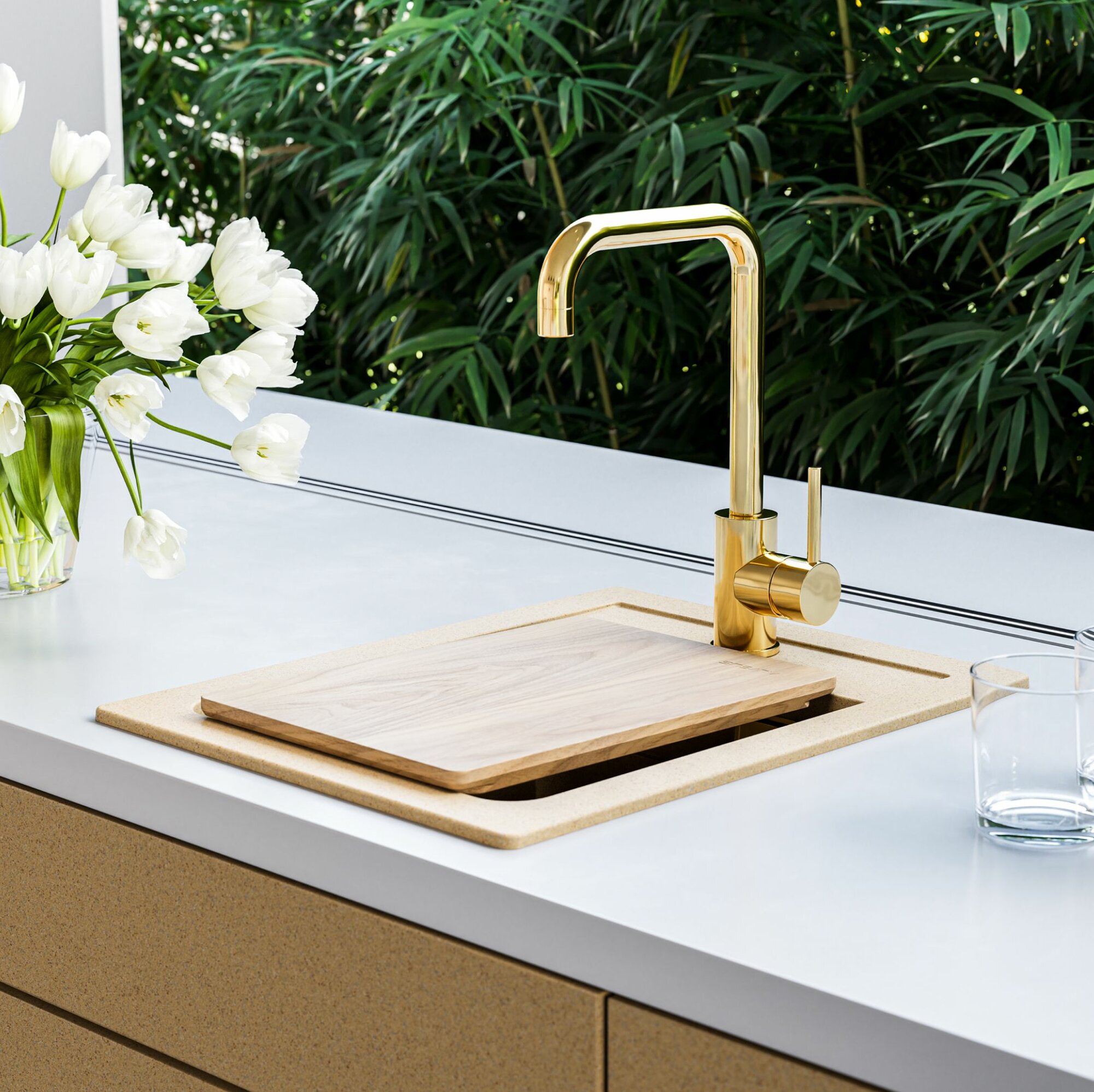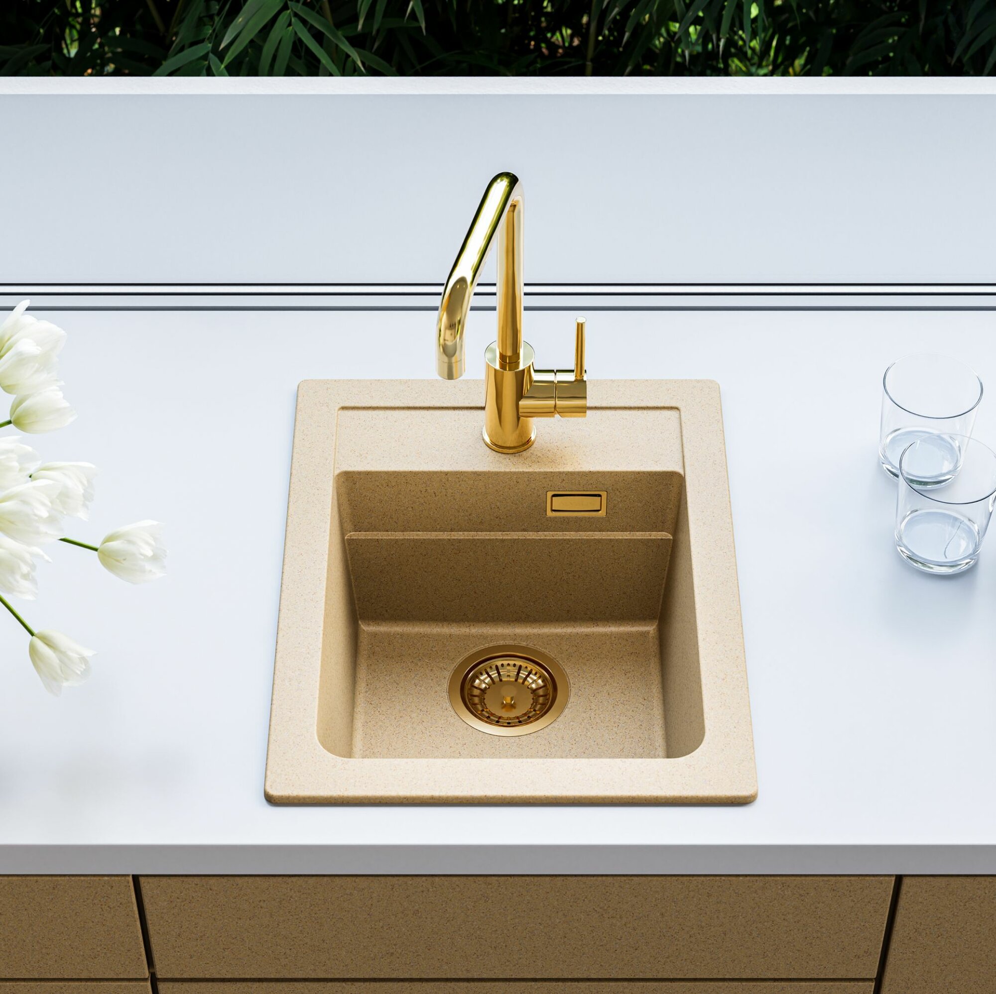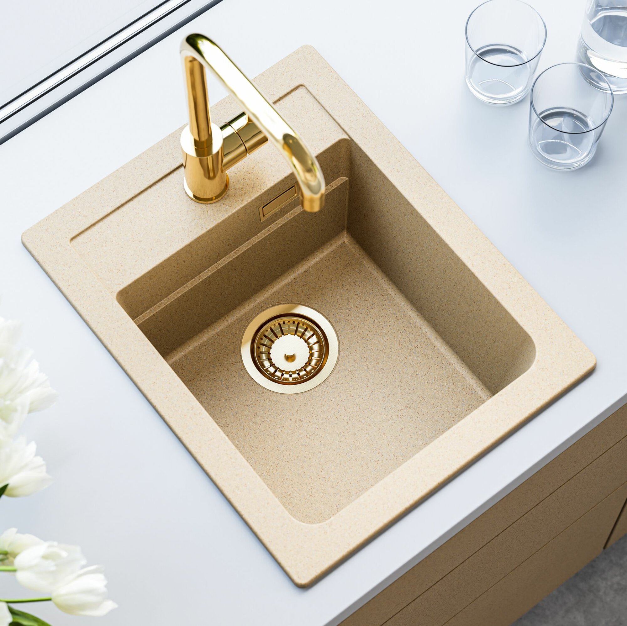 Раковина для кухни врезная каменная Alveus Granital Atrox 10 TERRA - G22 400 X 500 1X / кухонная мойка накладная из искусственного камня, гранит, бежевый