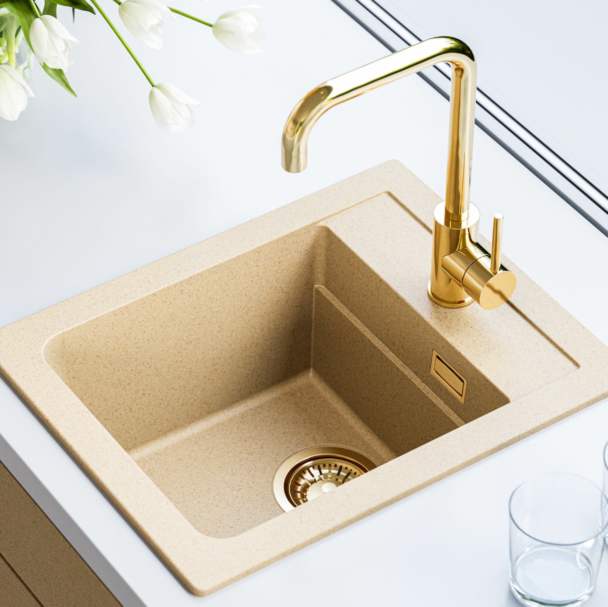 Раковина для кухни врезная каменная Alveus Granital Atrox 10 BEIGE - G55 400 X 500 / кухонная мойка накладная из искусственного камня, гранит, бежевый