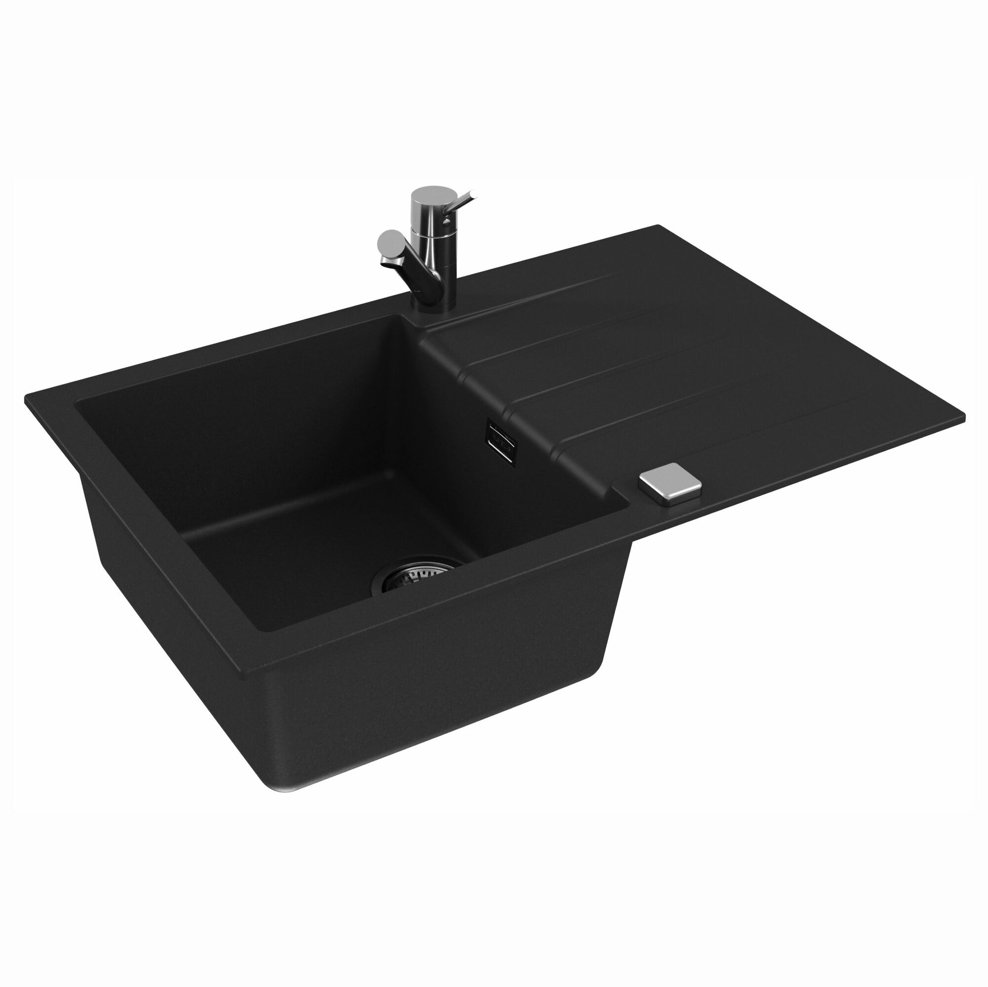 Каменная мойка врезная для кухни с крылом ALVEUS GRANITAL CADIT 20 CARBON - G91 790 X 500 1X искусственный камень гранит с сифоном. Цвет черный