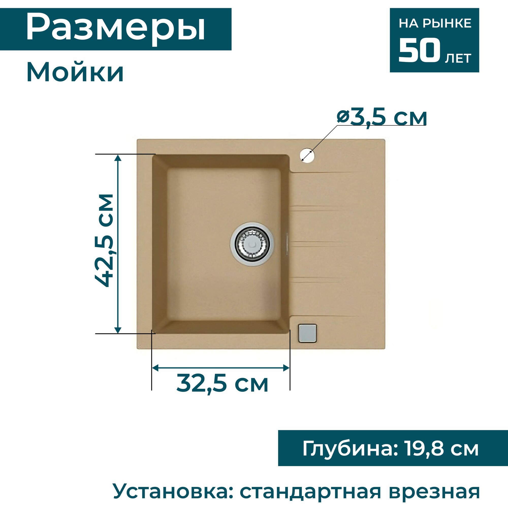| Особенности | отверстие под смеситель / сливная арматура |