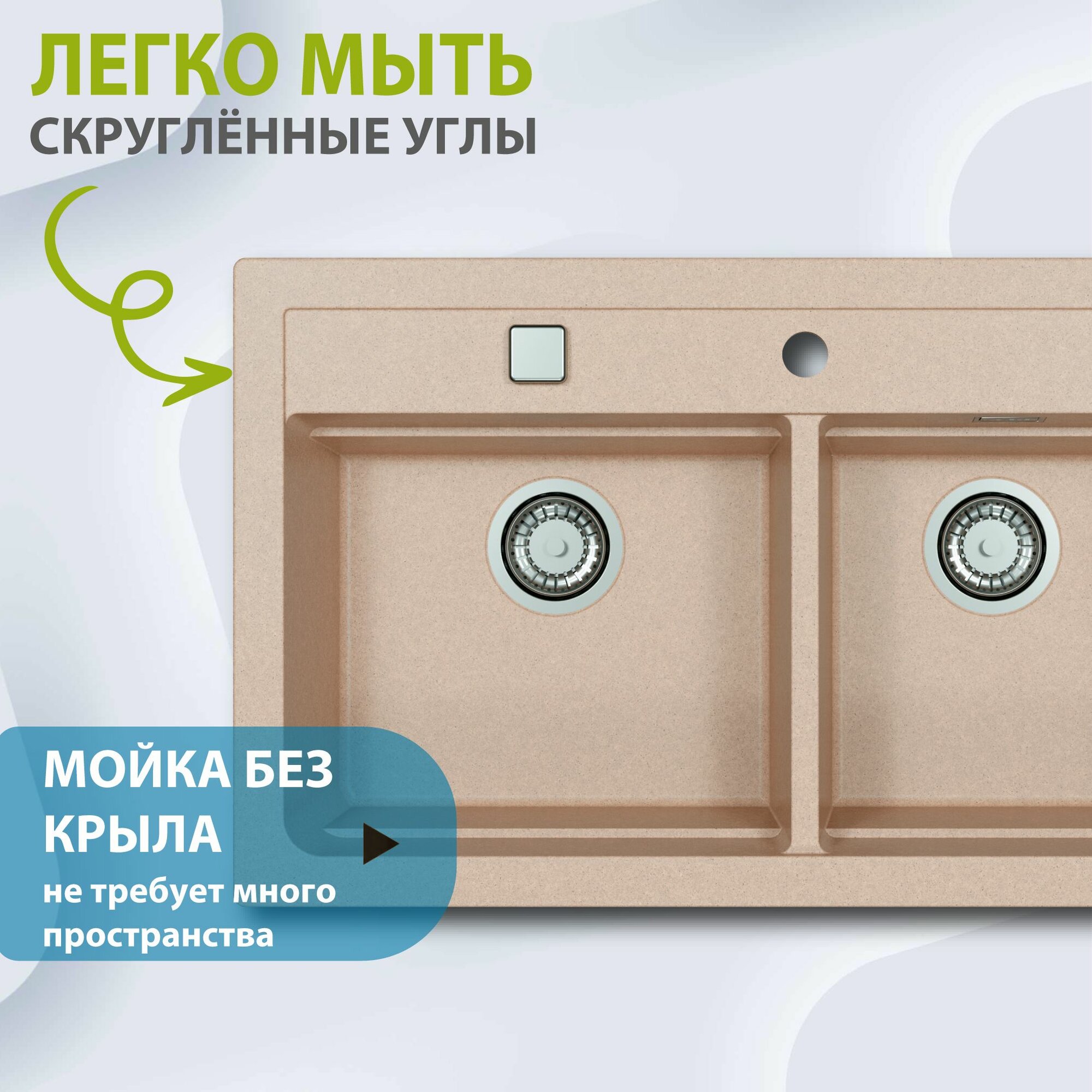 | Особенности | клапан-автомат / отверстие под смеситель / дополнительная чаша / сливная арматура |