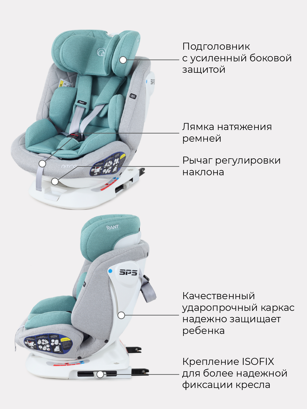 СохранитьДетское автокресло Rant Nitro, группа 0-1-2-3 (до 36 кг), расцветка Grey/Mint интересное: