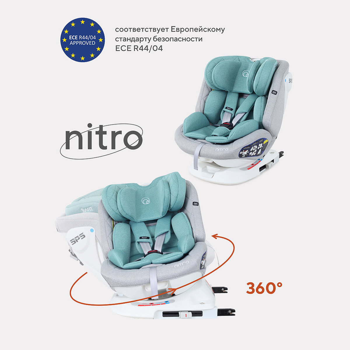 Купить Детское автокресло Rant Nitro, группа 0-1-2-3 (до 36 кг), расцветка Grey/Mint
