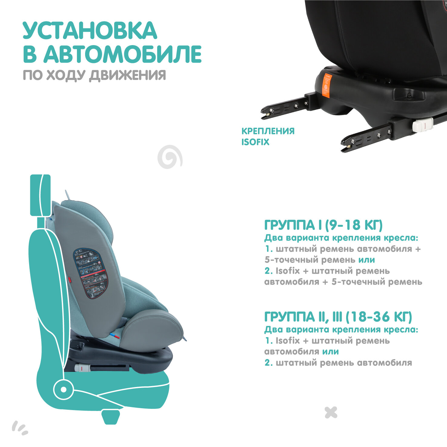 | Установка | спиной или лицом вперед |