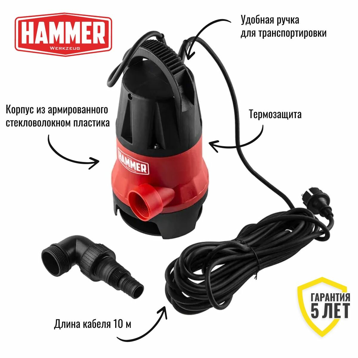 Насос Hammer_tools дренажный Hammer 550Вт 10000л/ч высота 7м частицы до 35мм