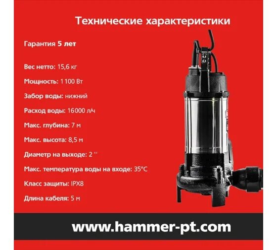 Фекальный насос Hammer NAP1100FD (1100 Вт)