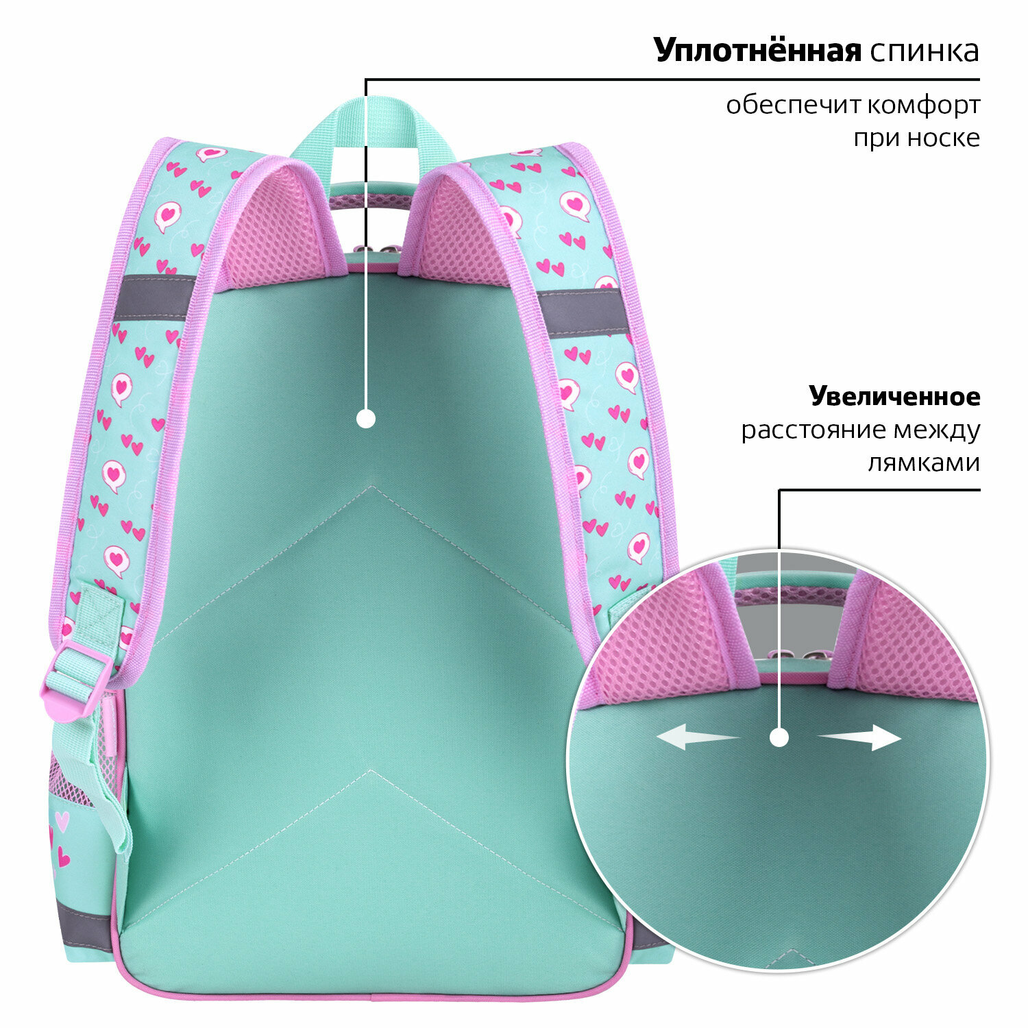 Рюкзак школьный для девочки, ранец для подростка спортивный, портфель детский в школу, 1 отделение, 3 кармана, Пифагор School Sweet mood, 272086