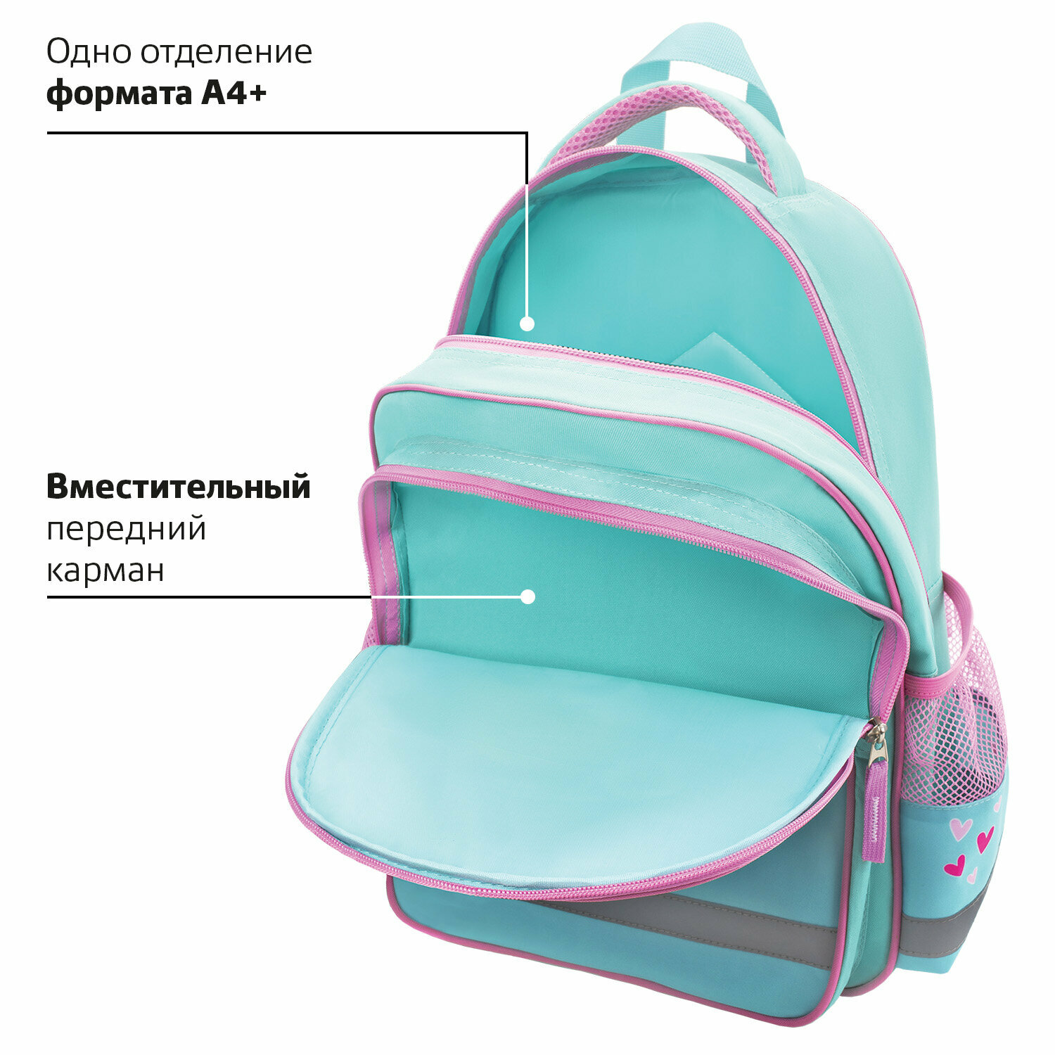Рюкзак школьный для девочки, ранец для подростка спортивный, портфель детский в школу, 1 отделение, 3 кармана, Пифагор School Sweet mood,