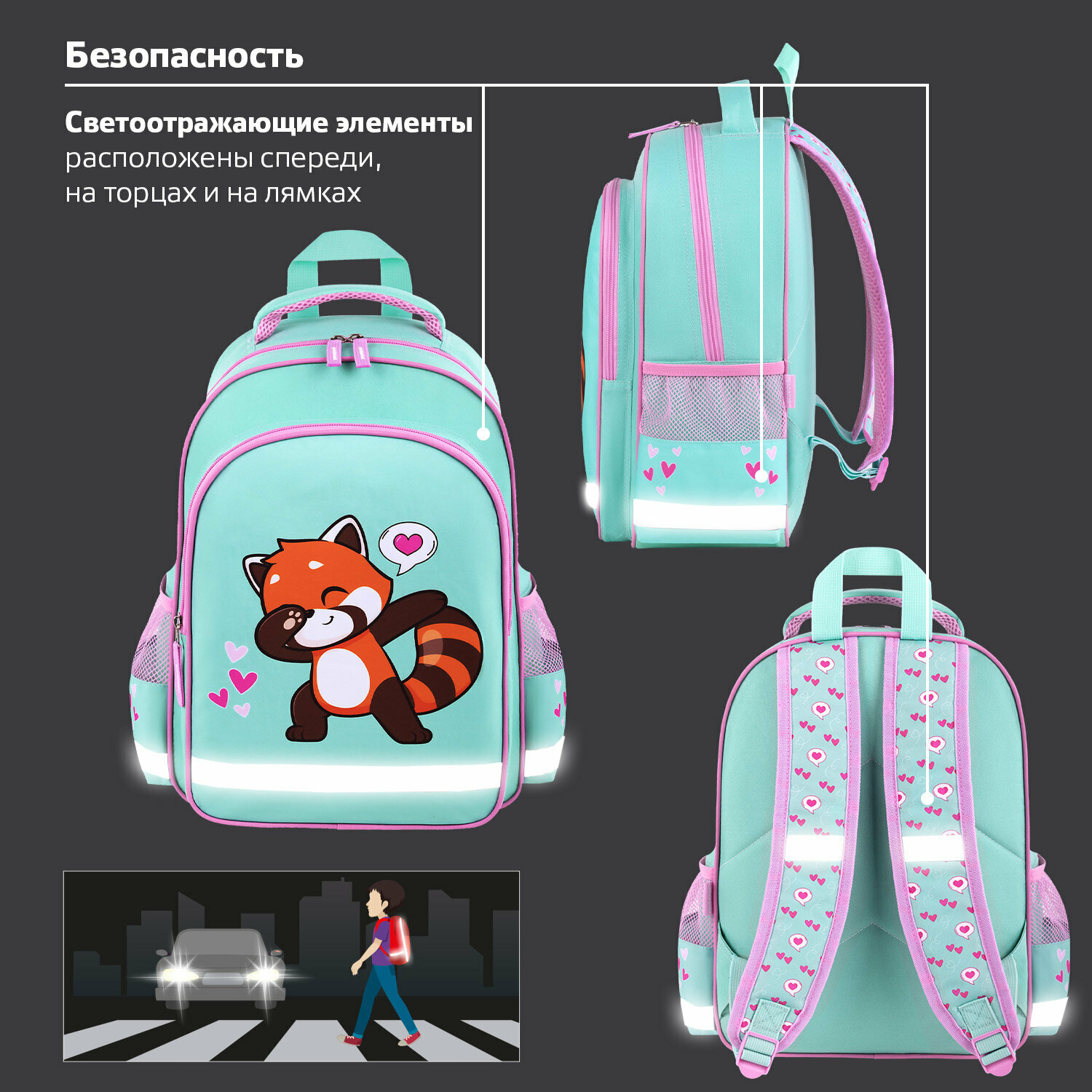 СохранитьРюкзак школьный для девочки, ранец для подростка спортивный, портфель детский в школу, 1 отделение, 3 кармана, Пифагор School Red panda, 272083 интересное: