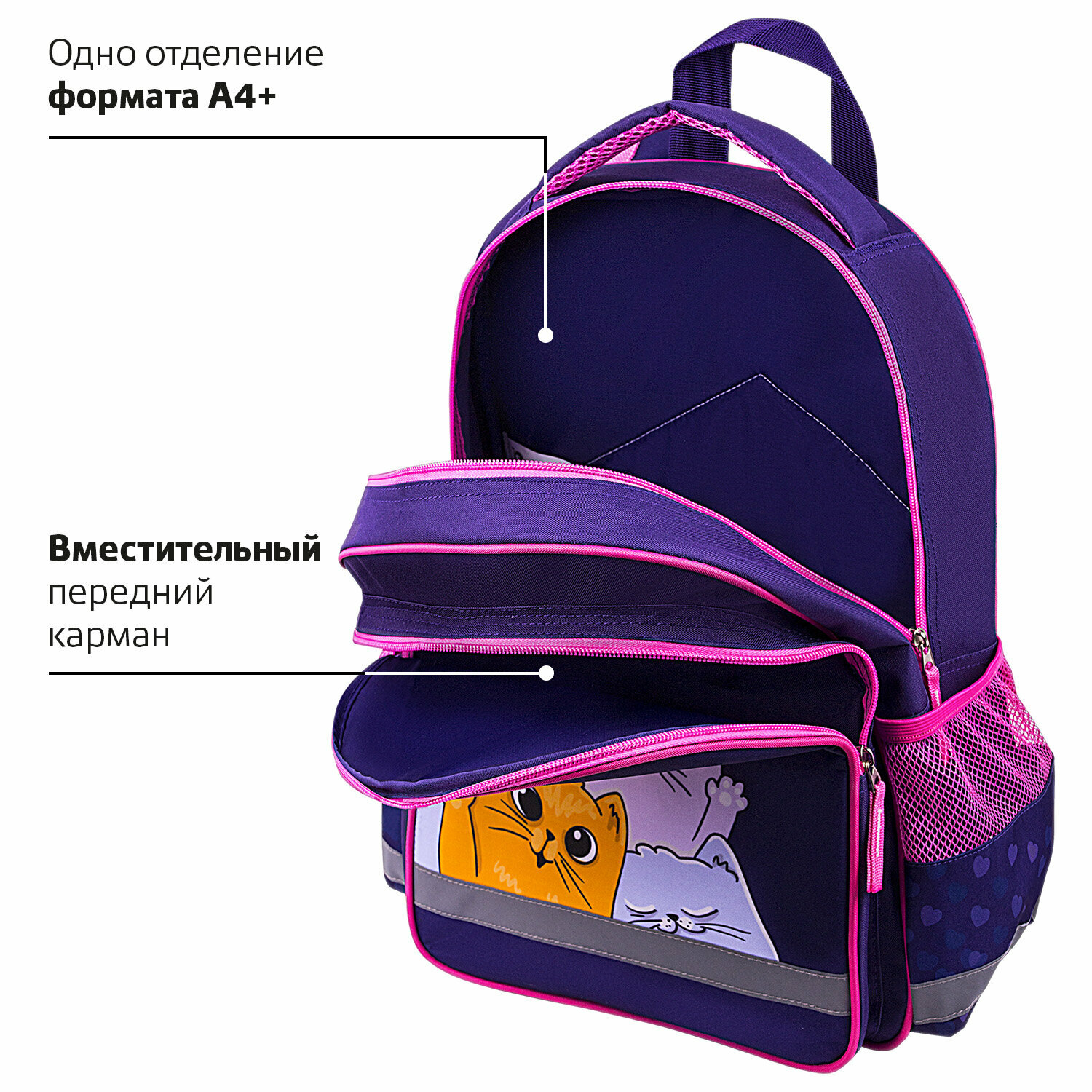 Ранец пифагор BASIC, 1 отделение, 3 кармана, эргономичная спинка, "Cat friends", 35х28х18 см, 272048