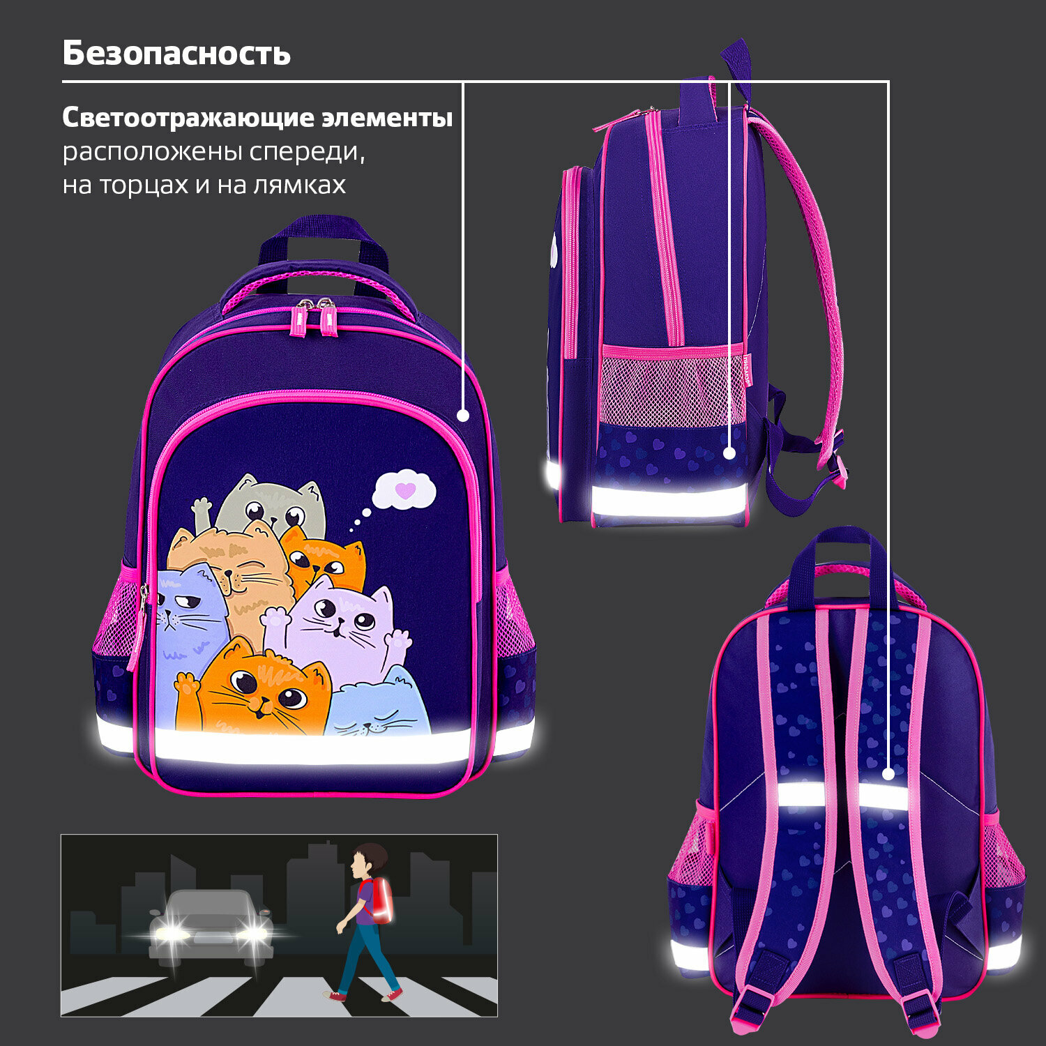 Пифагор Ранец Basic 1 отделение 3 кармана эргономичная спинка Cat friends 272048
