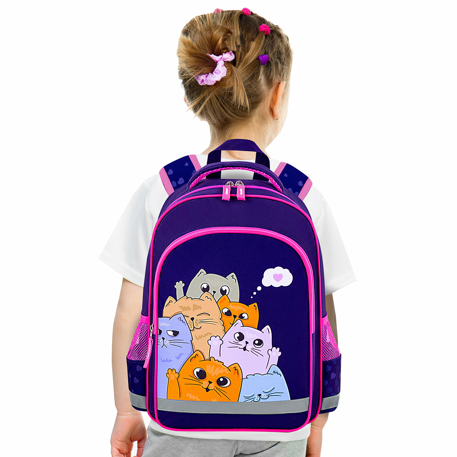 Купить Рюкзак школьный для девочки, ранец для подростка спортивный, портфель детский в школу, 1 отделение, 3 кармана, Пифагор School Cat greetings, 272087