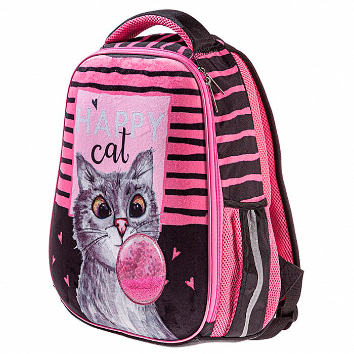 Рюкзак Hatber Ergonomic light Bubble-cat 38х29х12,5см, светоотражающий, 1 отделение (60045)
