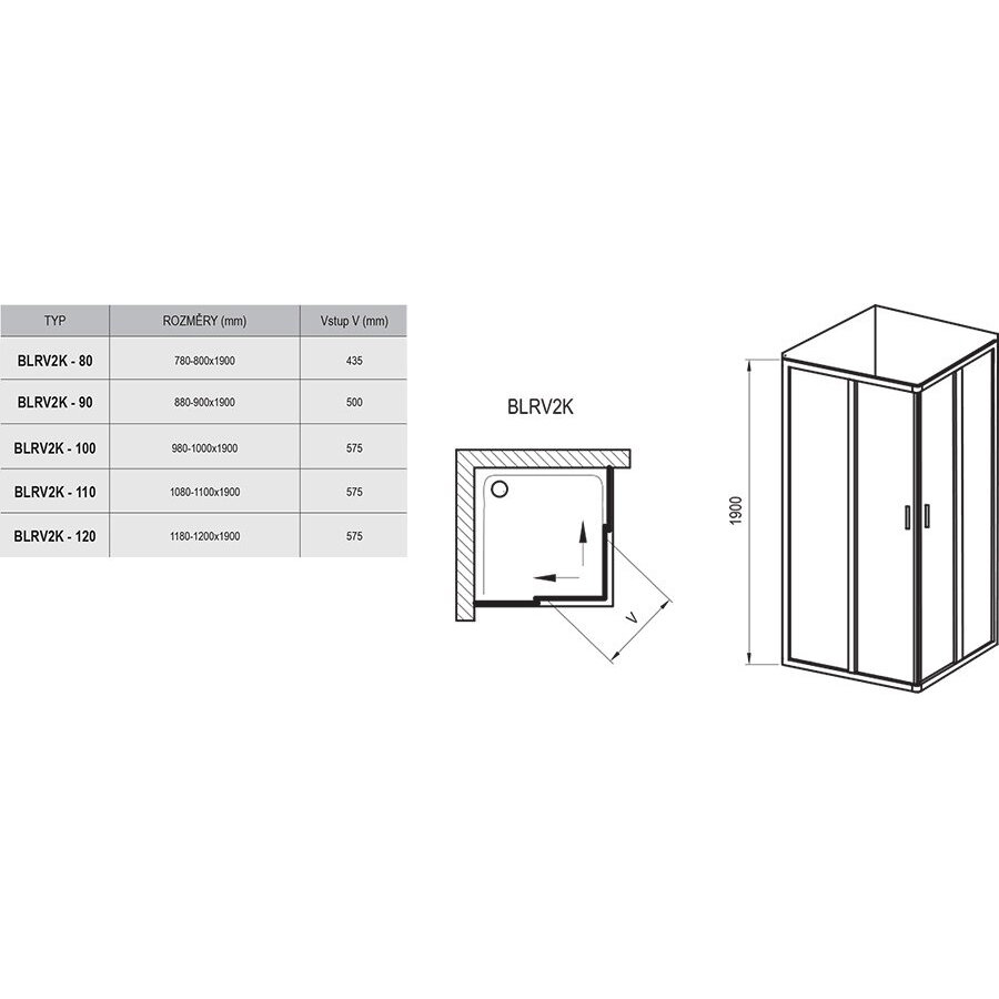 Душевые уголки BLRV2K-90 блестящий + стекло Транспарент