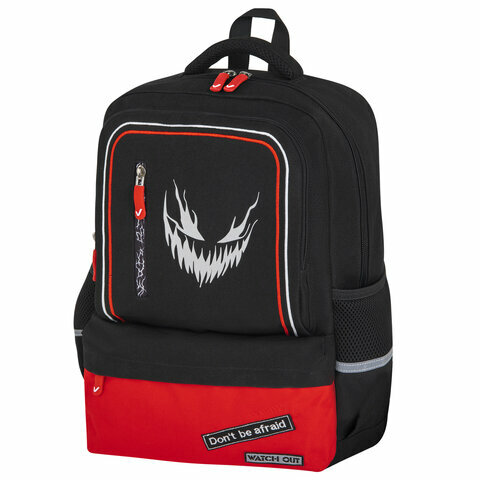 СохранитьРюкзак BRAUBERG STAR, 1 отделение, 5 карманов, "Scary face", черный, 40x29x13 см, 272060 интересное: