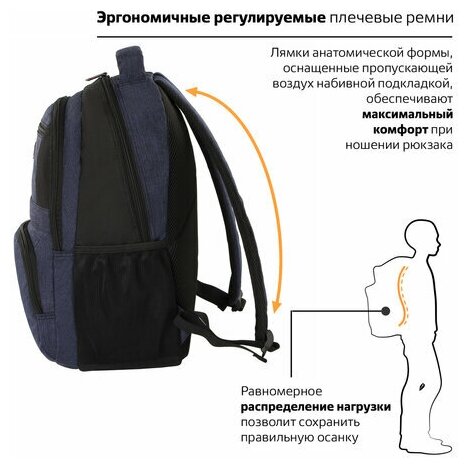 Рюкзак 45х29х15 см BRAUBERG "URBAN" универсальный с отделением для ноутбука, Dallas темно-синий