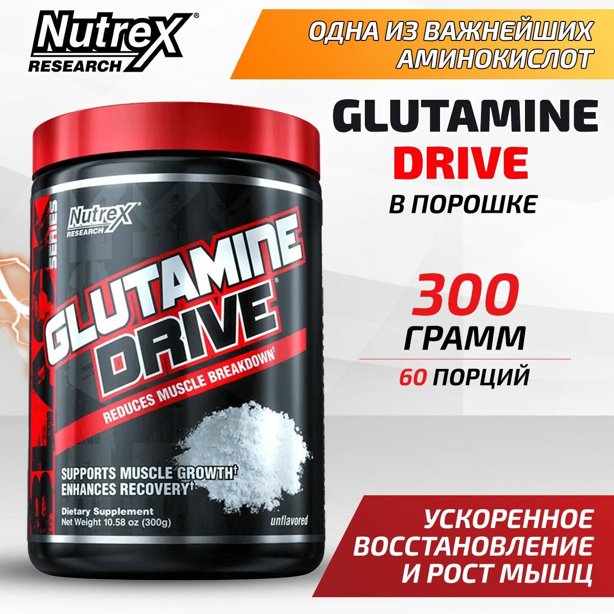 Купить Л-Глютамин Nutrex Glutamine Drive, порошок 300г / Аминокислота / Спортивное питание для спортсменов, мужчин и женщин