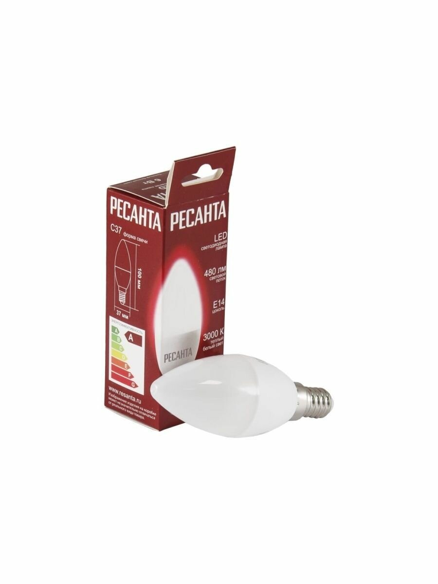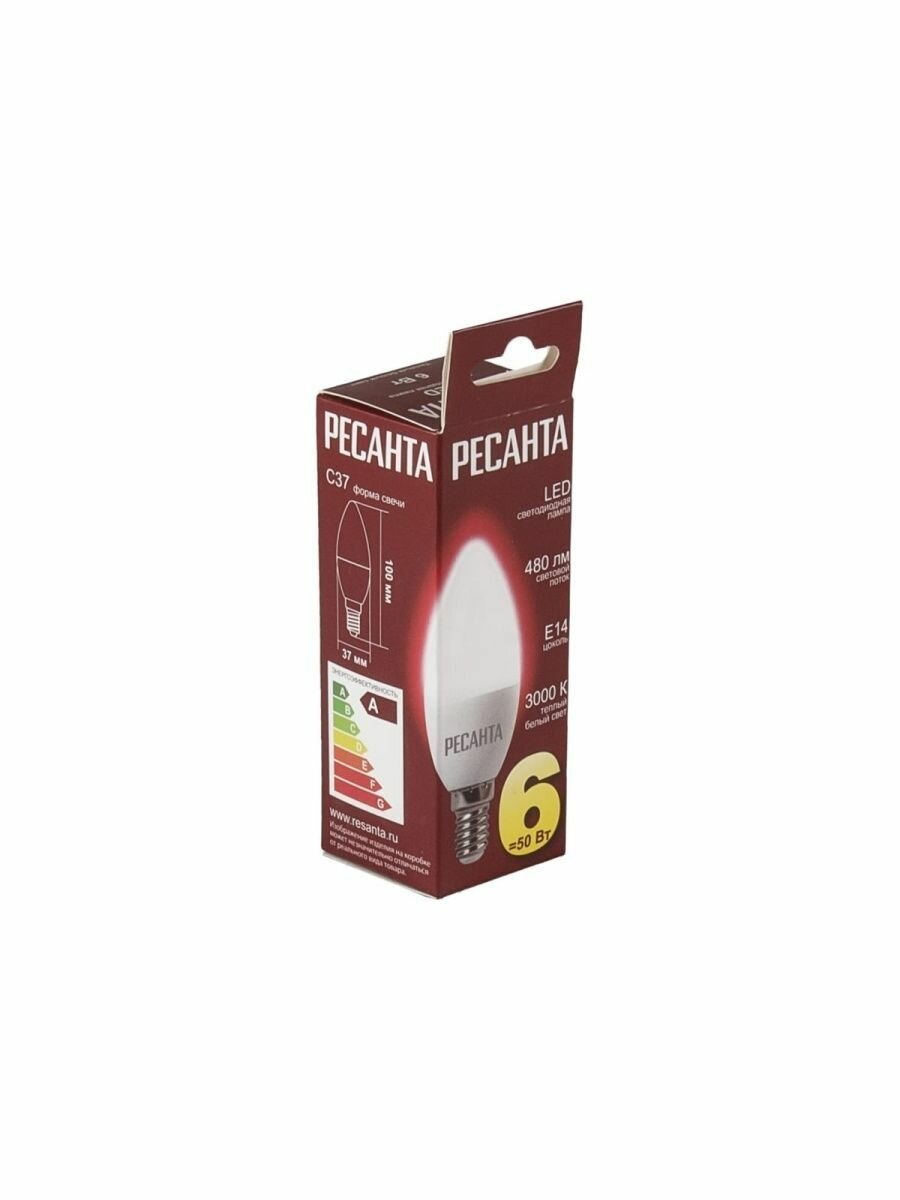 Светодиодная лампа Ресанта LL-R-C37-6W-230-3K-E14 (свеча, 6Вт, теплый, Е14) 76/1/3