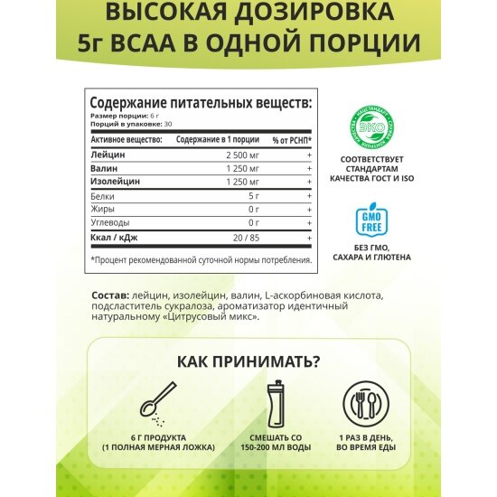| Тип | аминокислотный комплекс / BCAA: валин / изолейцин / лейцин |