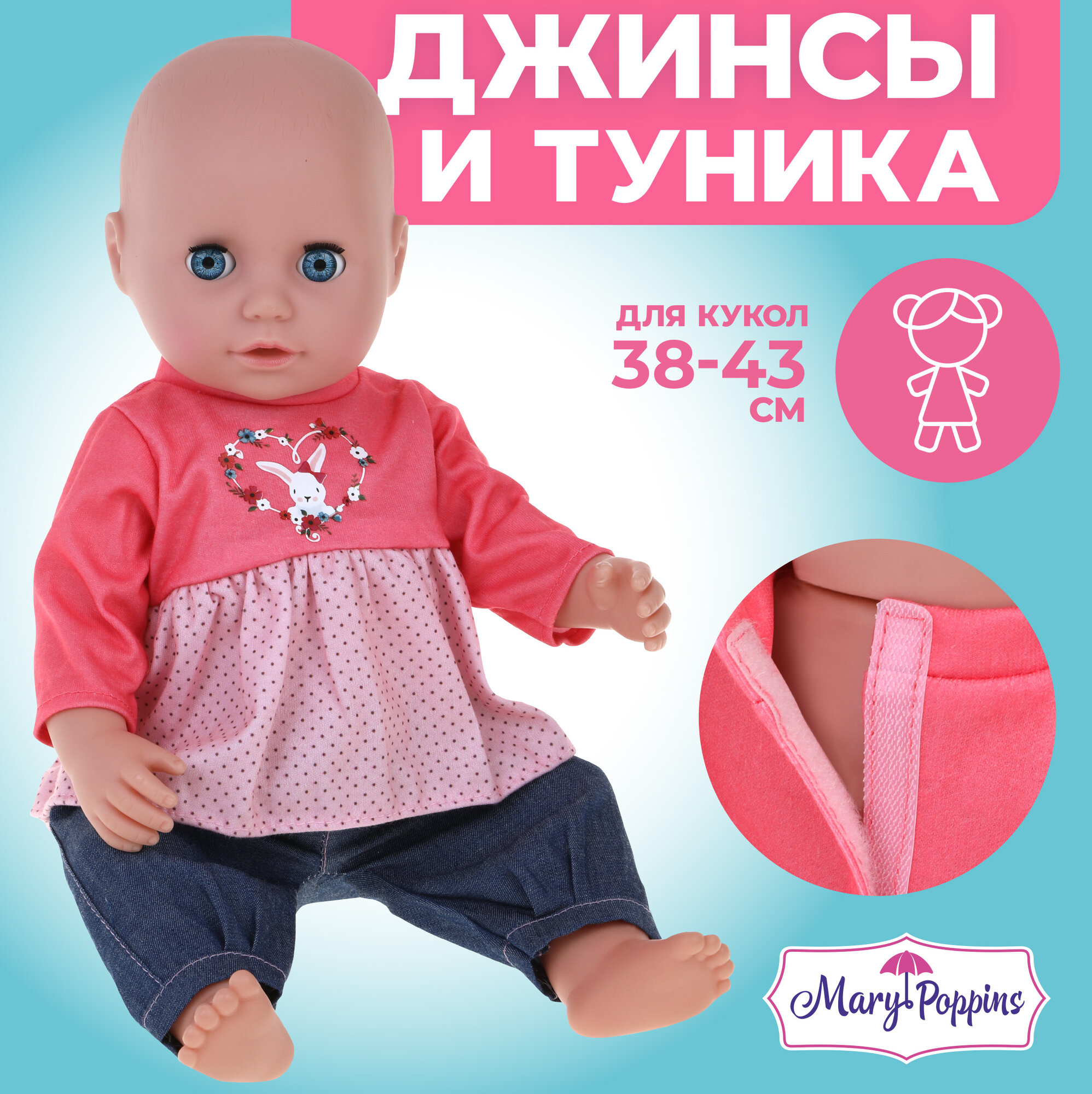Mary Poppins Одежда для куклы 38-43 см, туника и джинсы Мэри 452148 с 3 лет