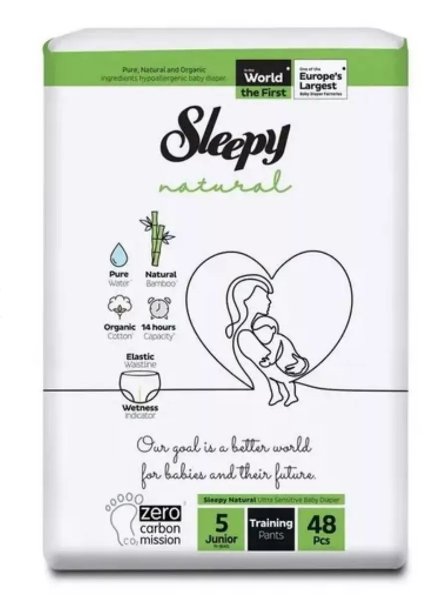 Купить Sleepy подгузники Natural Junior, размер 5, 11-18 кг, 48 шт/уп, 1 уп