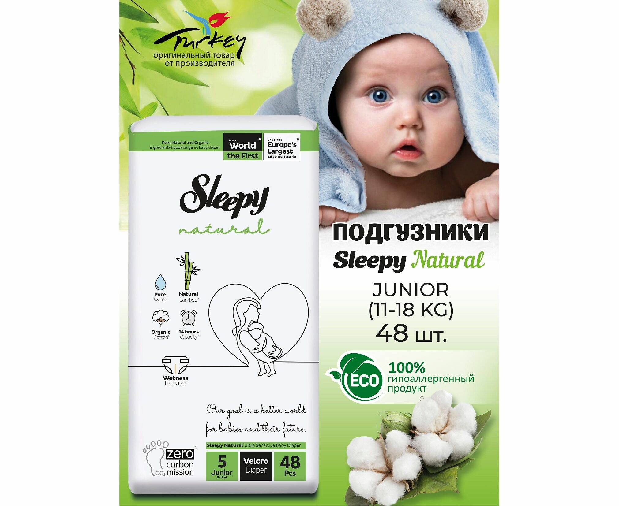 СохранитьSleepy подгузники Natural Junior, размер 5, 11-18 кг, 48 шт/уп, 1 уп интересное: