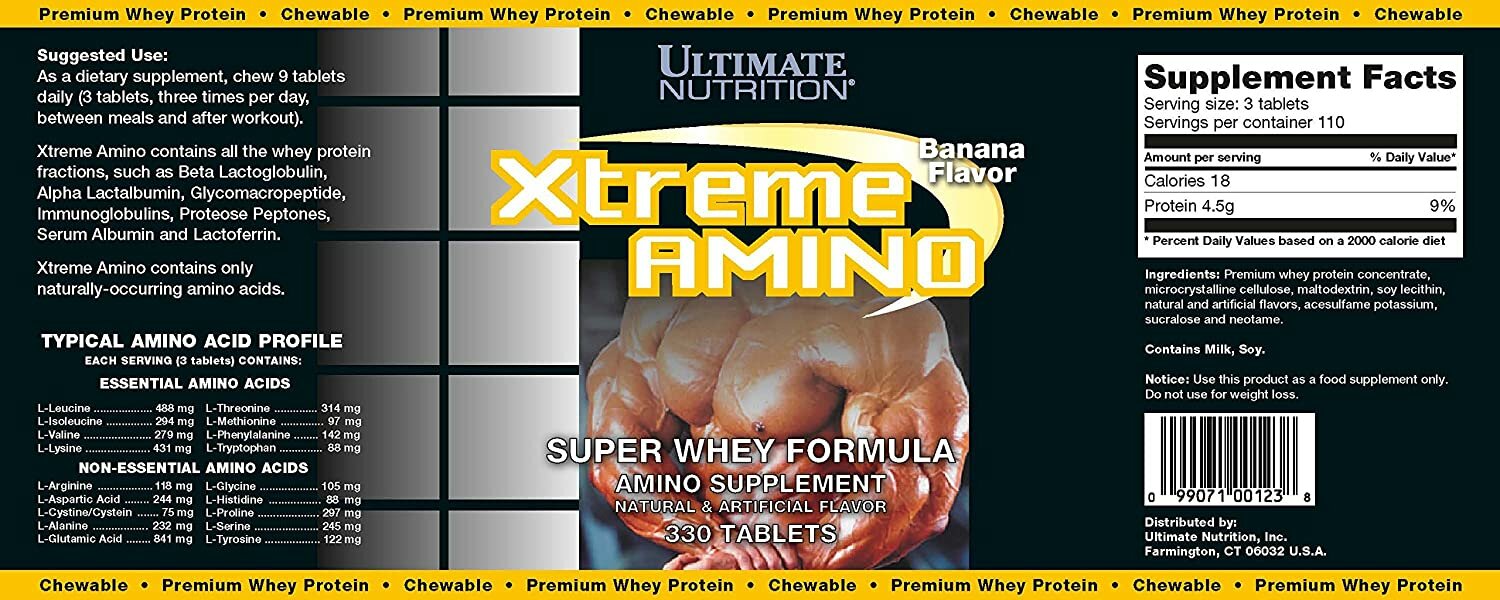 Купить Аминокислоты Ultimate Nutrition Xtreme Amino Super 330 жевательных таблеток, Банан