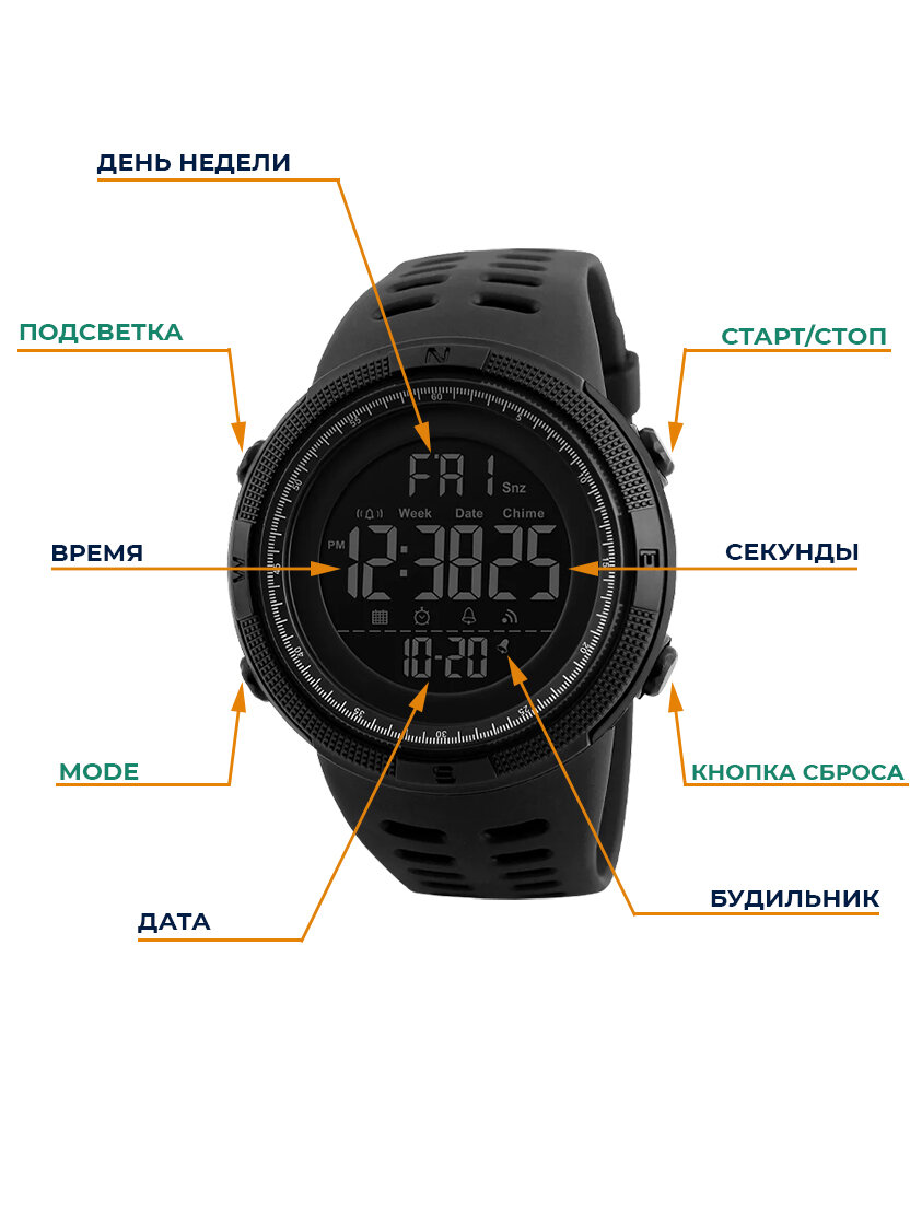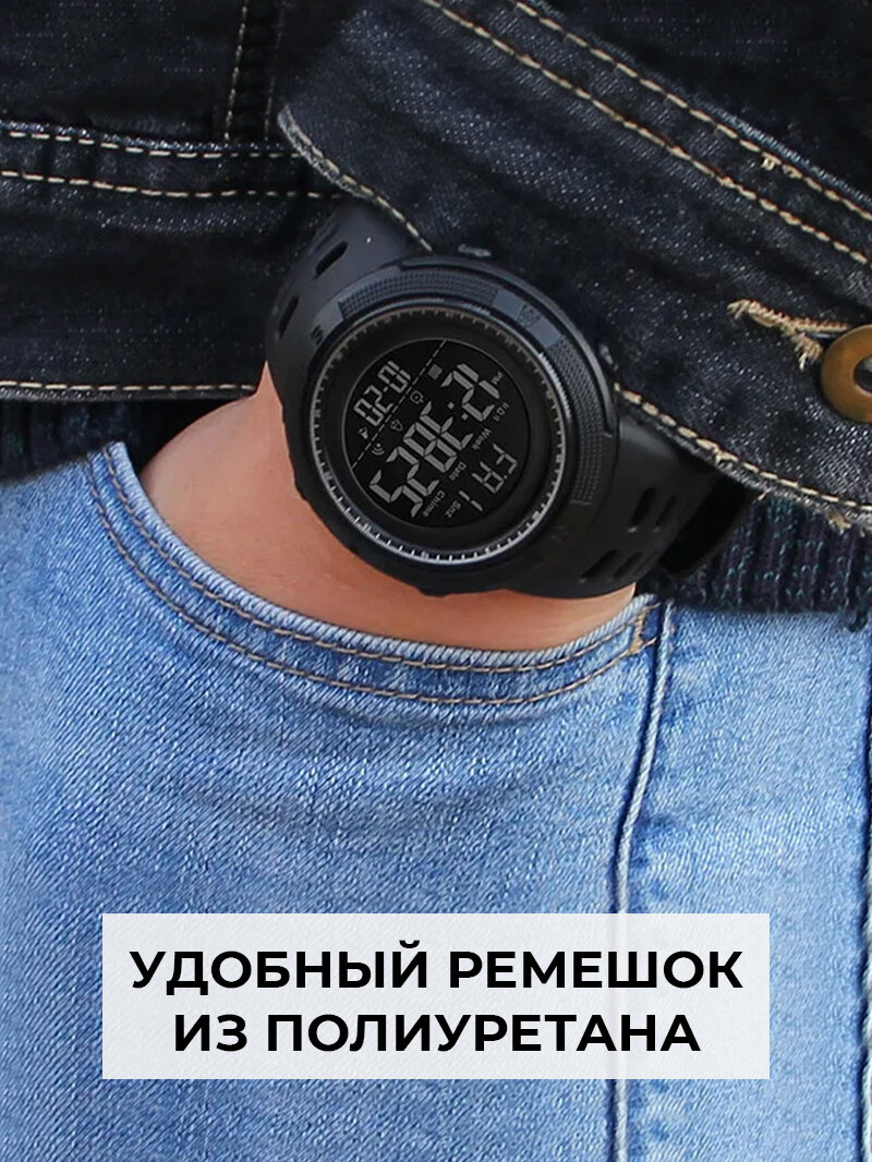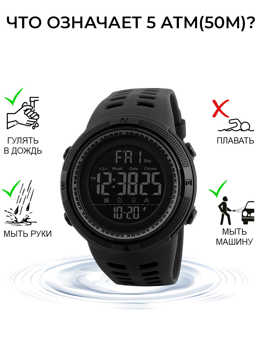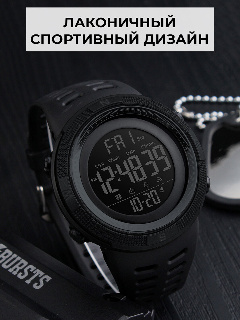 Часы наручные SKMEI 1251 черные, Спортивные, водонепроницаемые, электронные, будильник, подсветка, таймер, секундомер
