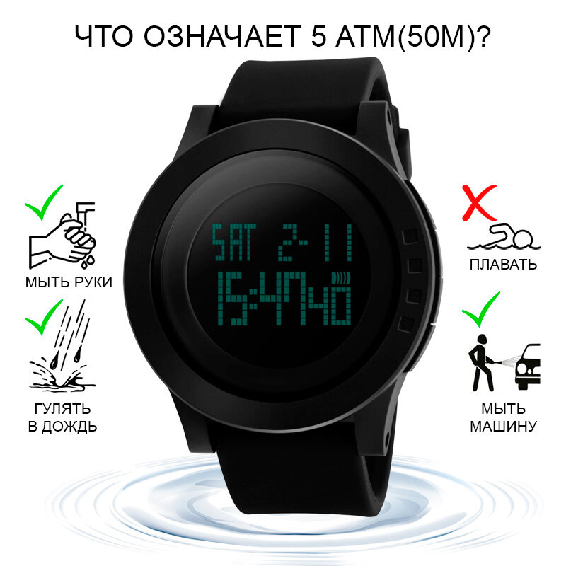 Часы наручные мужские Skmei/Скмей спортивные, электронные, водонепроницаемые, черные