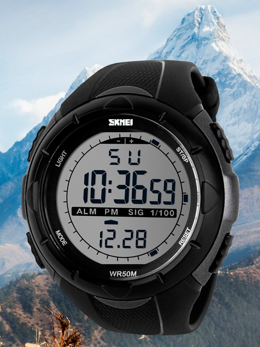 Купить Часы мужские наручные SKMEI спортивные, электронные, кварцевые, с будильником и подсветкой, черные