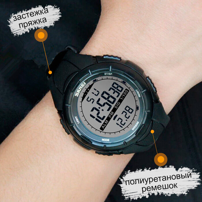 Часы мужские наручные SKMEI спортивные, электронные, кварцевые, с будильником и подсветкой, черные интересное: