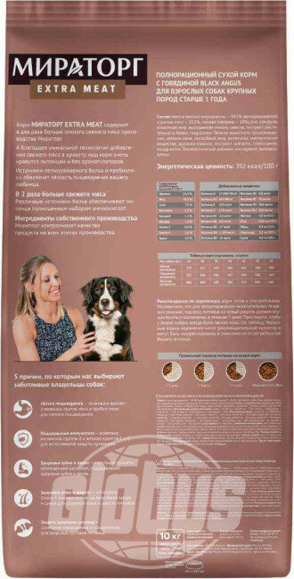 Мираторг 73241 EXTRA MEAT сух.д/взрослых собак крупных пород с Говядиной Black Angus 10кг 20%