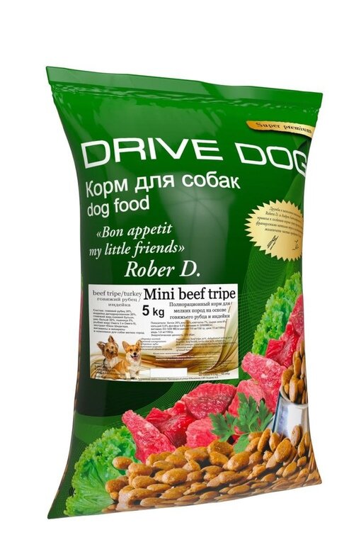 DRIVE DOG Mini beef tripe полнорационный корм для собак мелких пород говяжий рубец с индейкой (10 кг)
