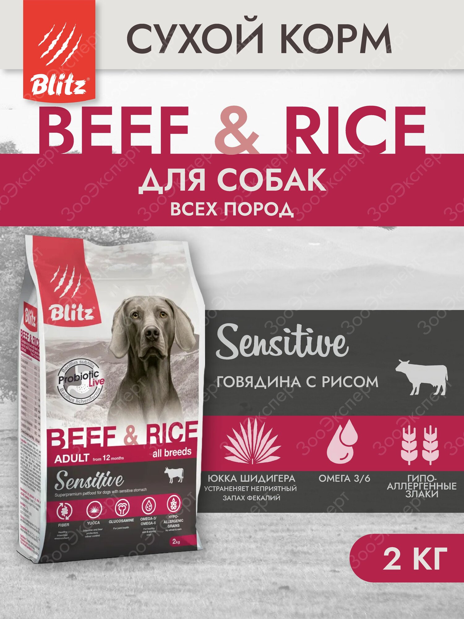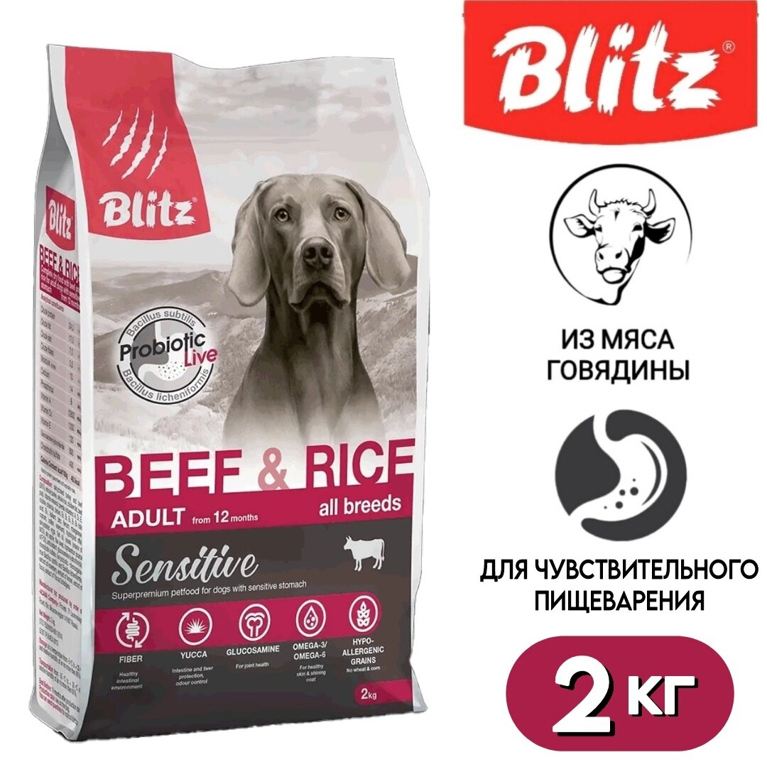 Сухой корм для собак Blitz Sensitive, говядина с рисом 1 уп. х 1 шт. х 2 кг