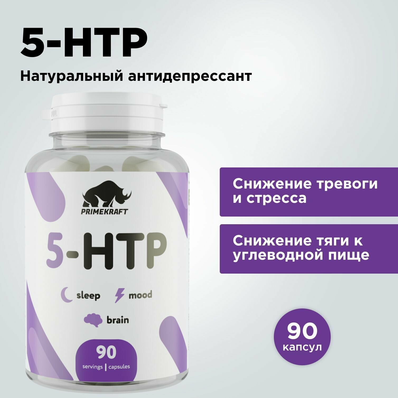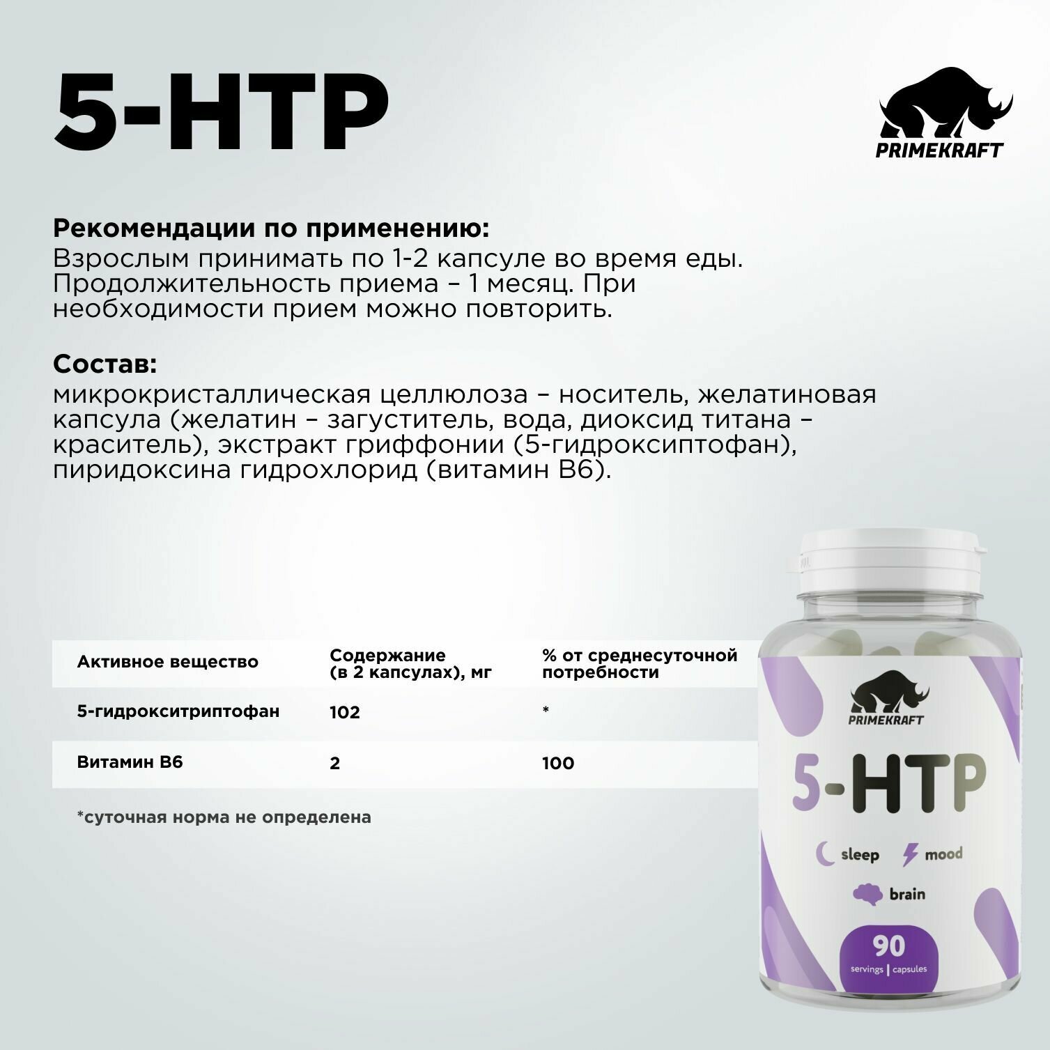 5 HTP PRIMEKRAFT 45 порций / Снижение стресса / Для настроения и здорового сна (5-гидрокситриптофан 102 мг + Витамин B6 2 мг), 90 капсул