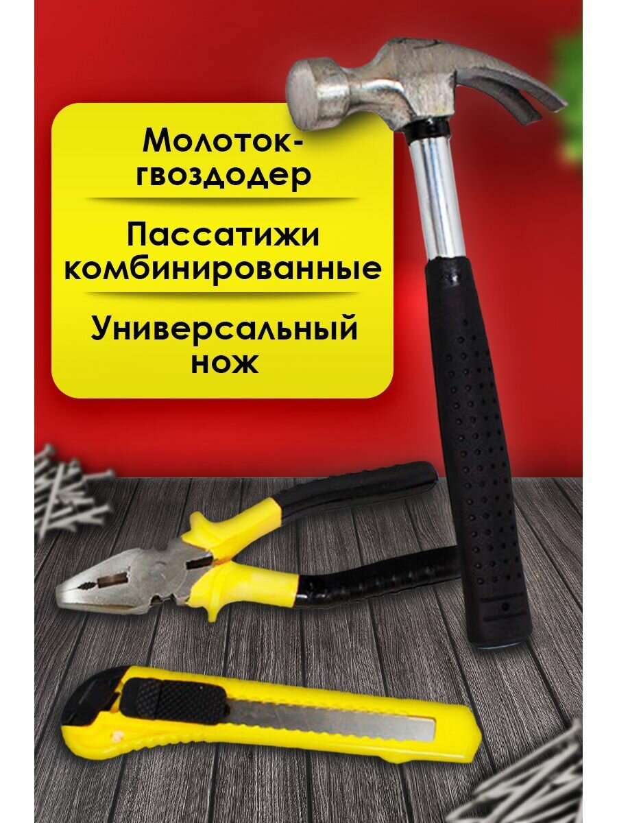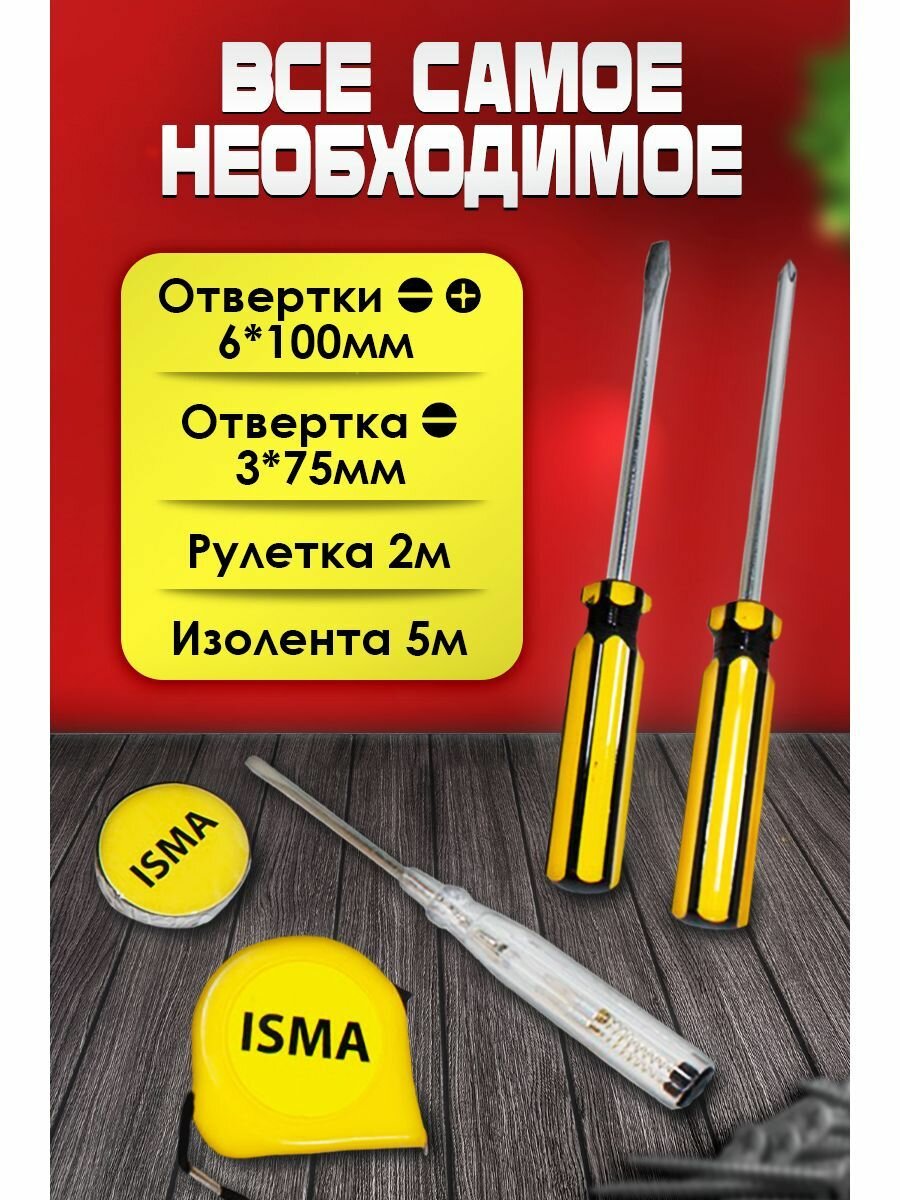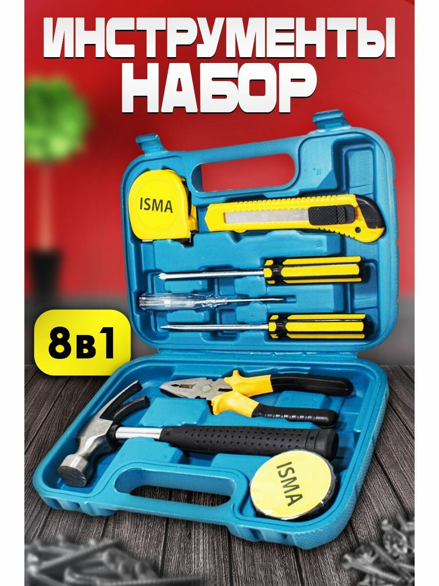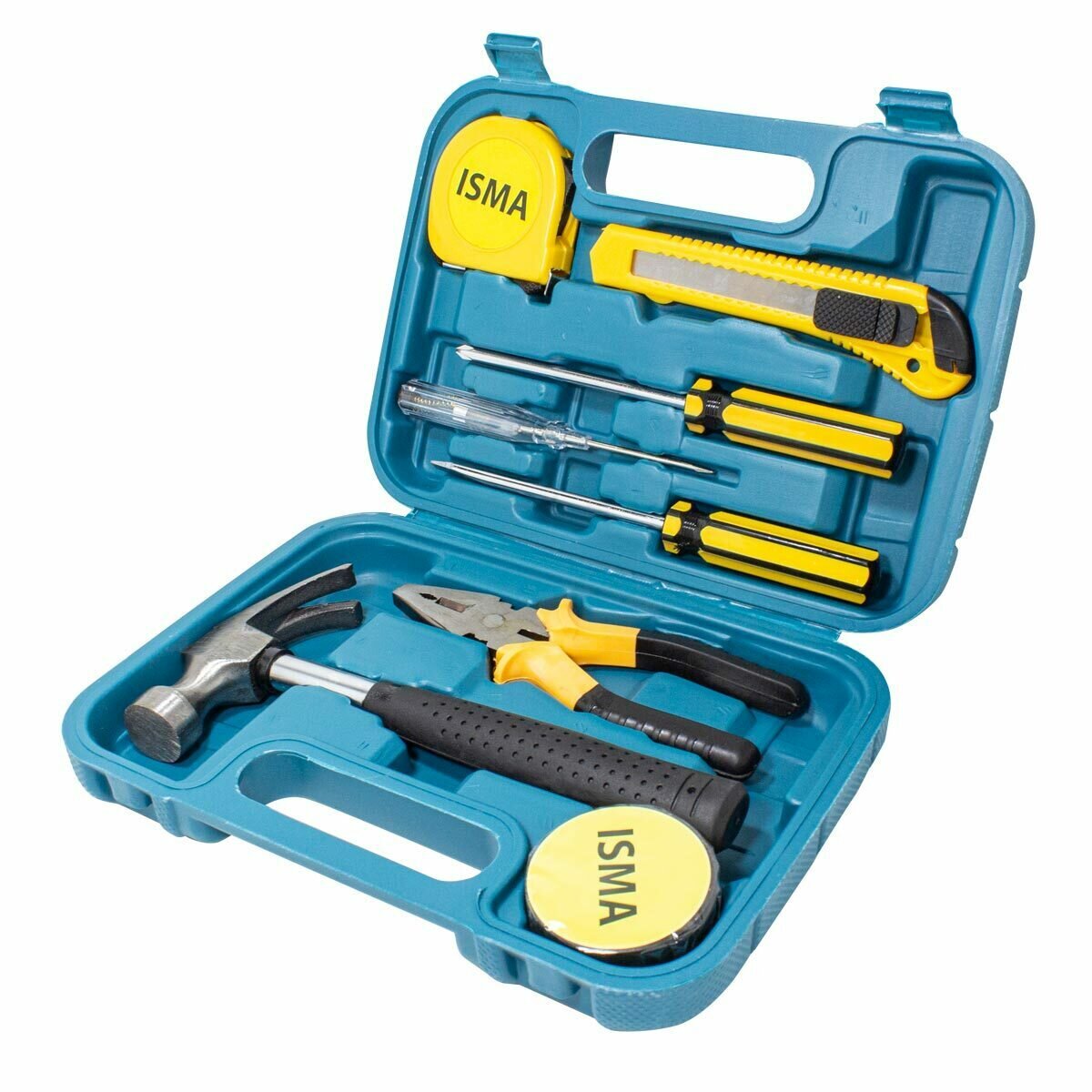 Набор инструментов ISMA TOOLS с плоскогубцами, ножом, рулетками, изолентой, молотком 9 предметов