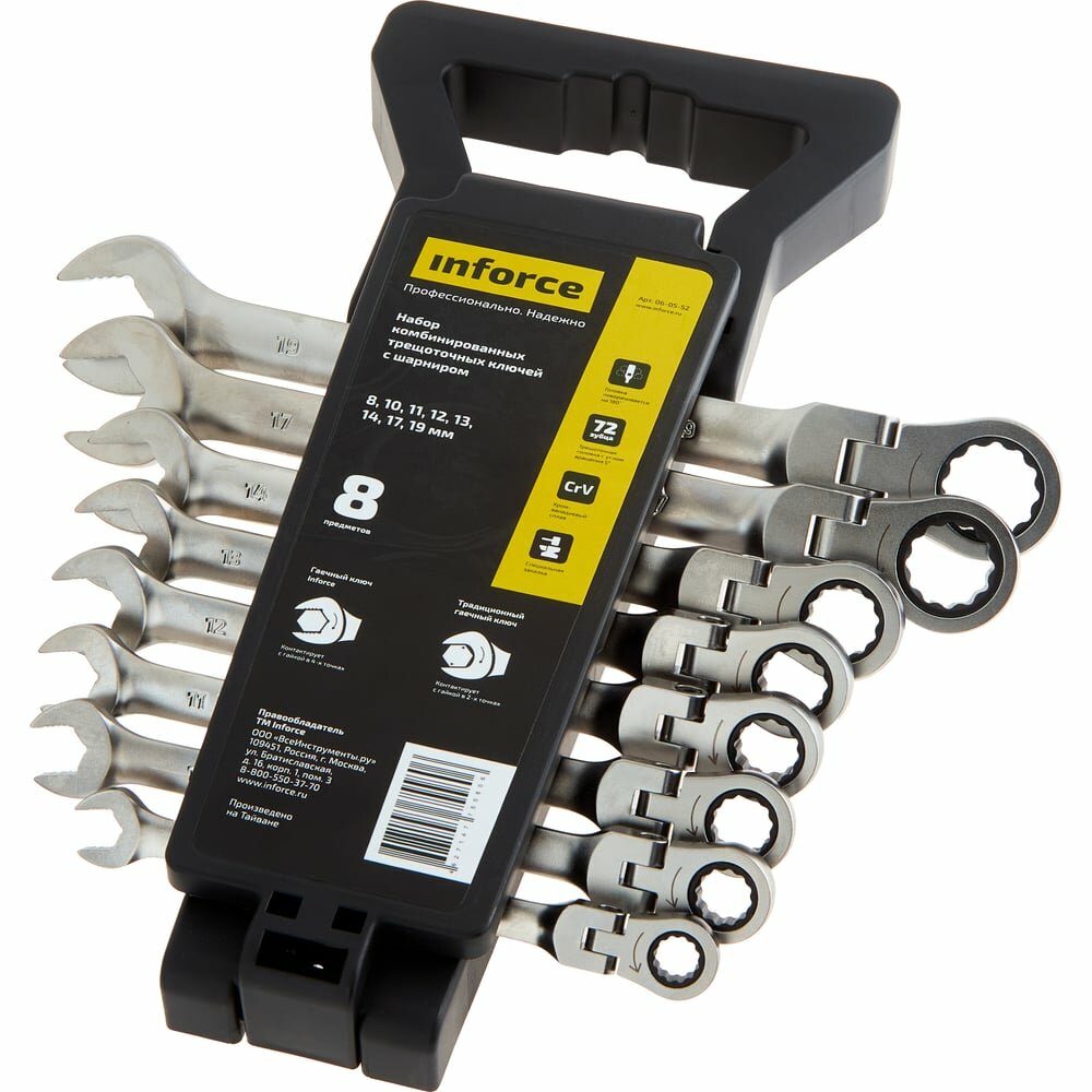 Набор комбинированных шарнирных ключей с трещоткой 13 предметов Inforce 06-05-53