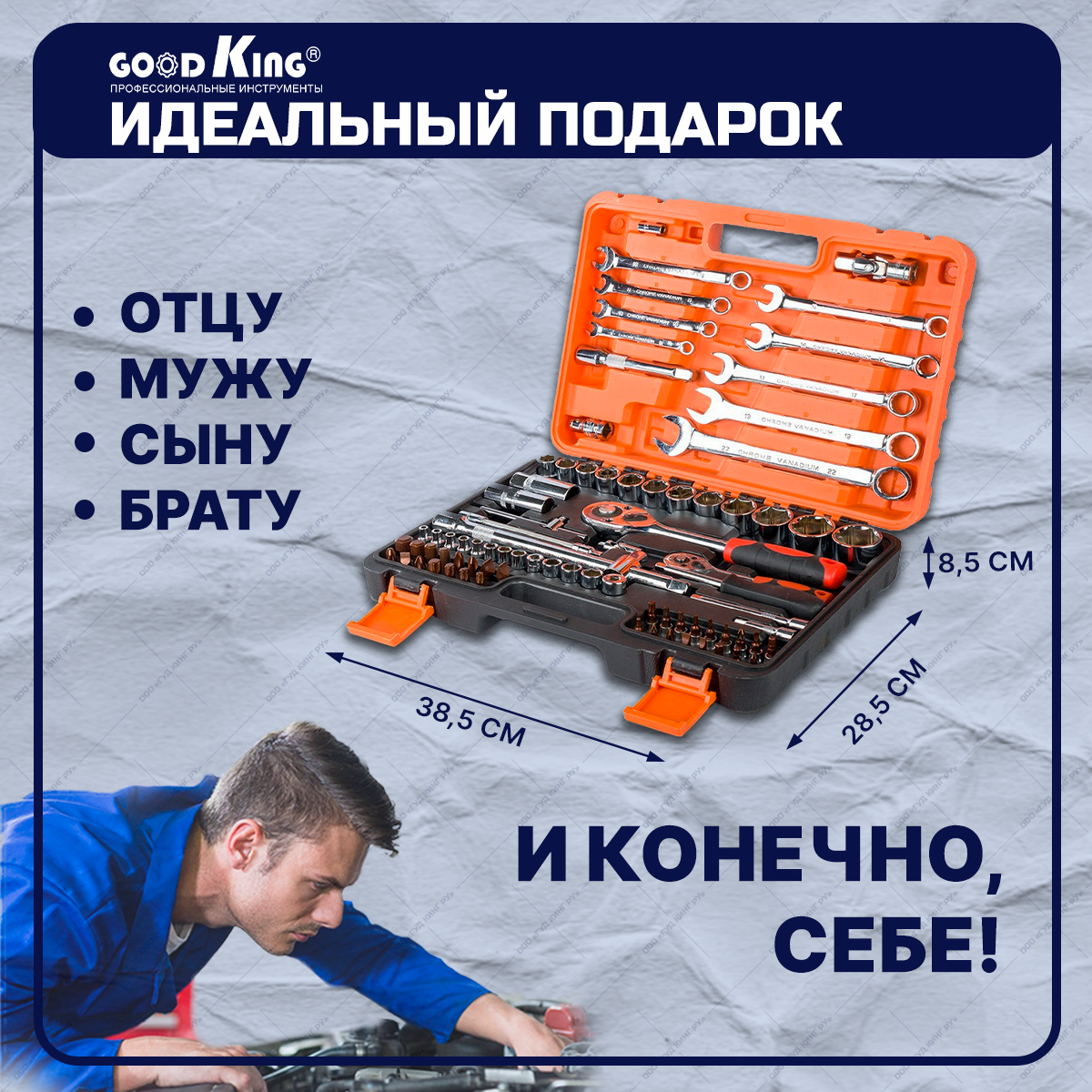 СохранитьНабор инструментов, GOODKING,82 предмета, набор торцевых головок, набор комбинированных ключей (K-10082) интересное: