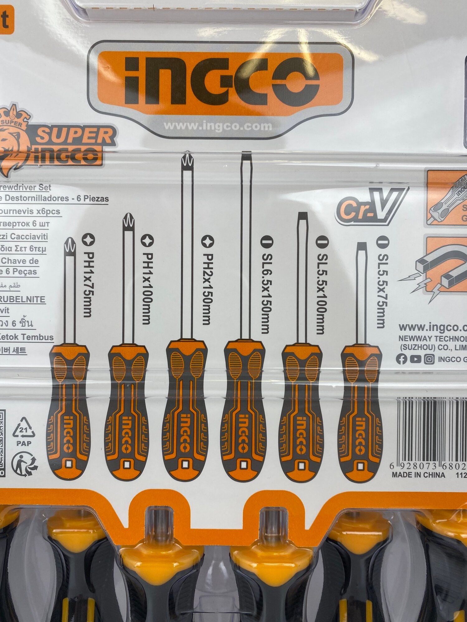 Набор отверток (6 шт; Cr-V) магнитный наконечник INGCO INDUSTRIAL HKSD0628