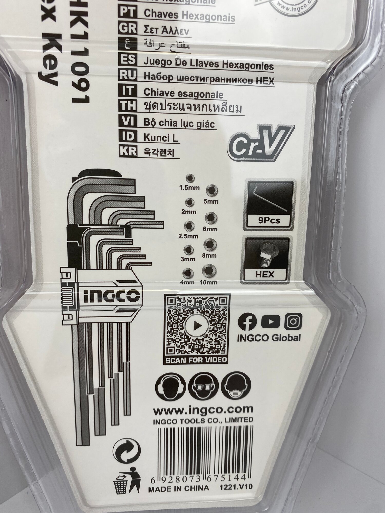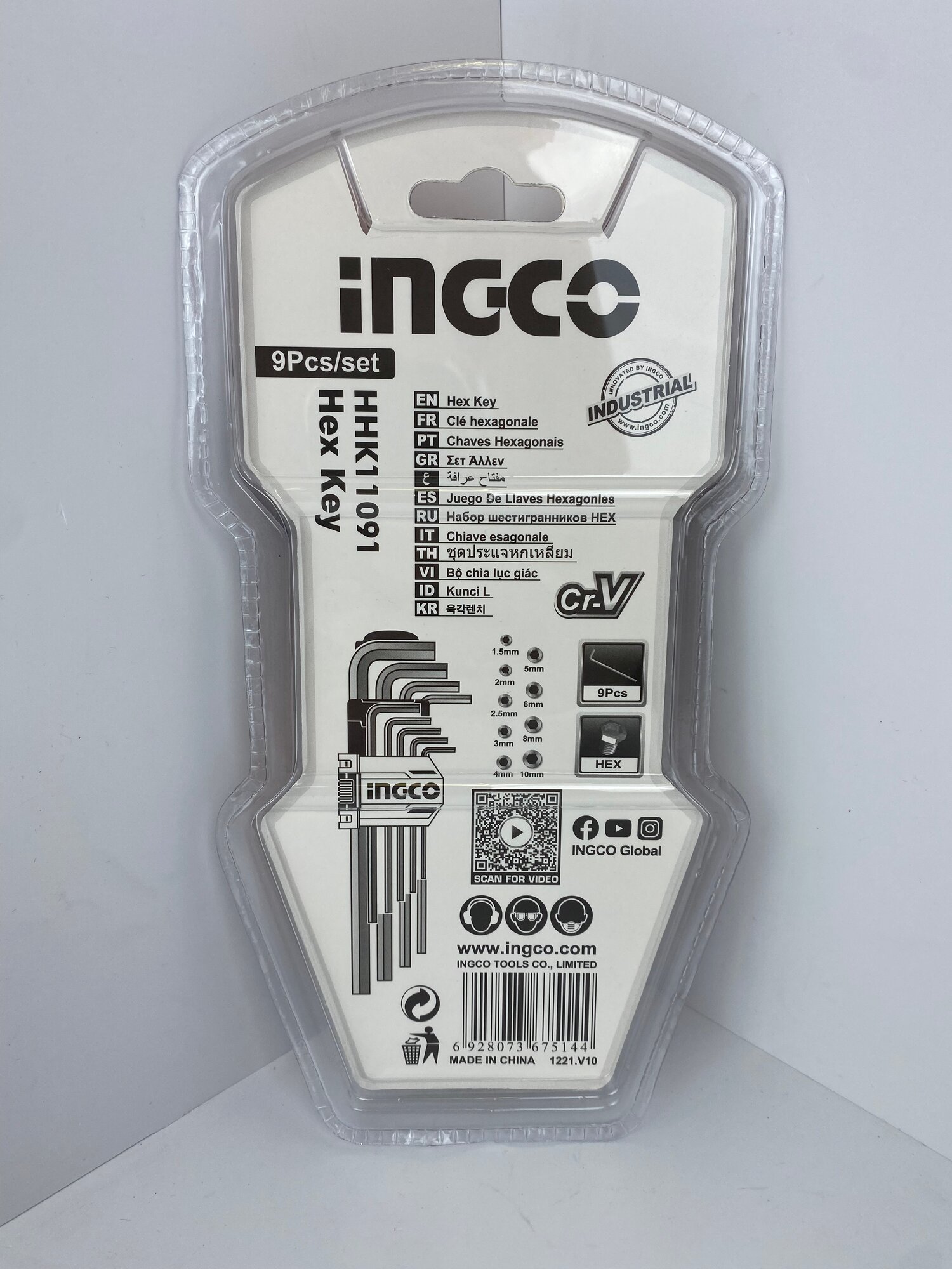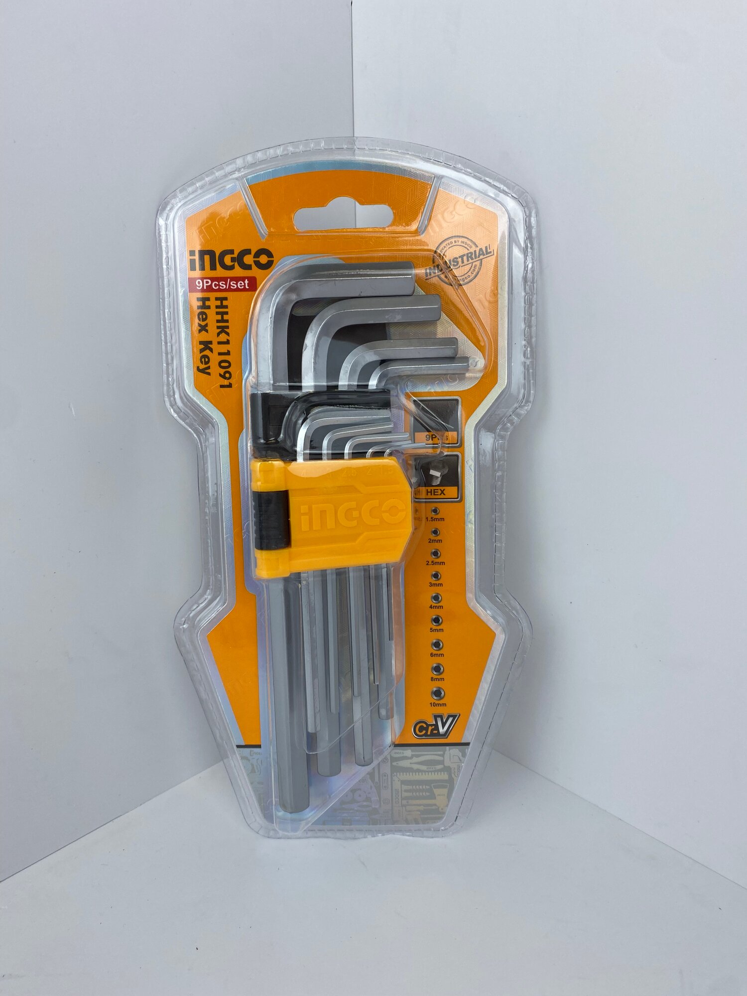 Набор шестигранников HEX, Cr-V 9шт, 1.5-10мм INGCO INDUSTRIAL HHK11091