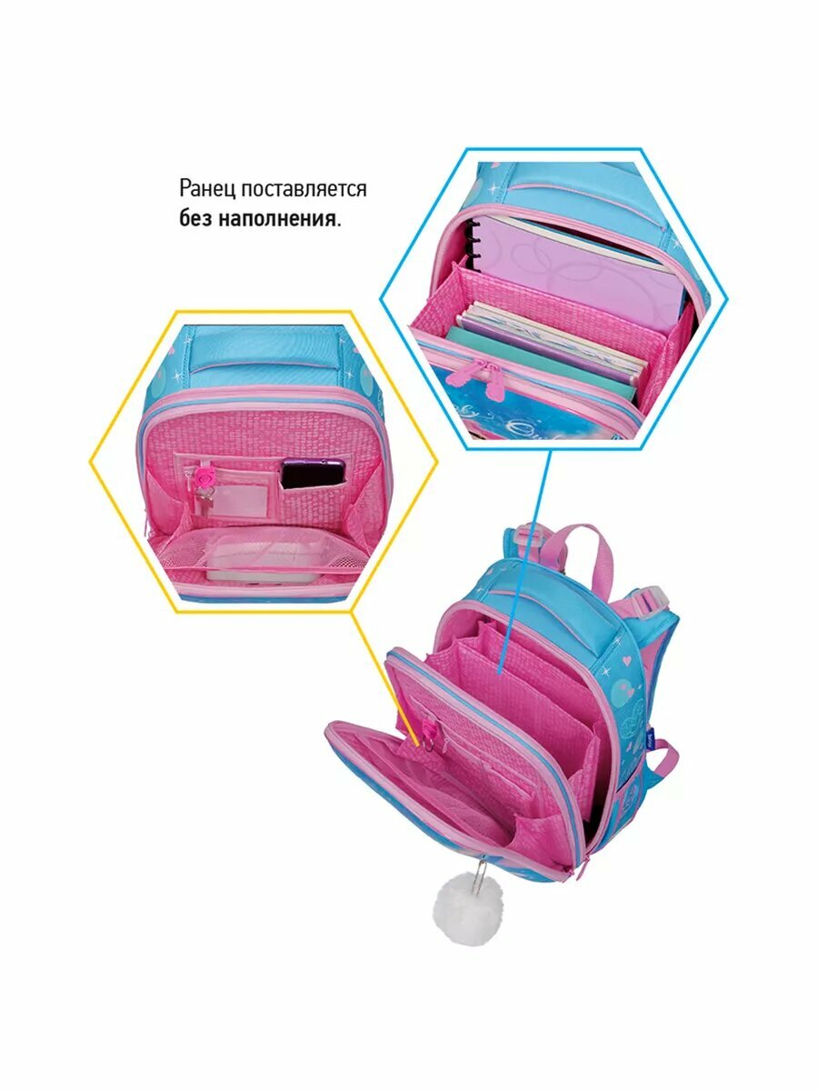 Ранец школьный для девочки первоклассницы Berlingo Expert "Plush Owl", 2 отделения, 2 кармана, анатомическая спинка + подвеска В подарок