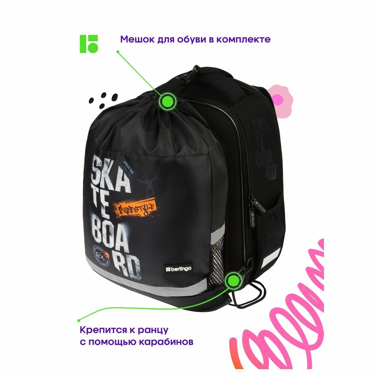 Ранец Berlingo Expert Mini "Right to ride" 36х27х14 см, 2 отделения, 2 кармана, анатомическая спинка, мешок для обуви (RU09052)