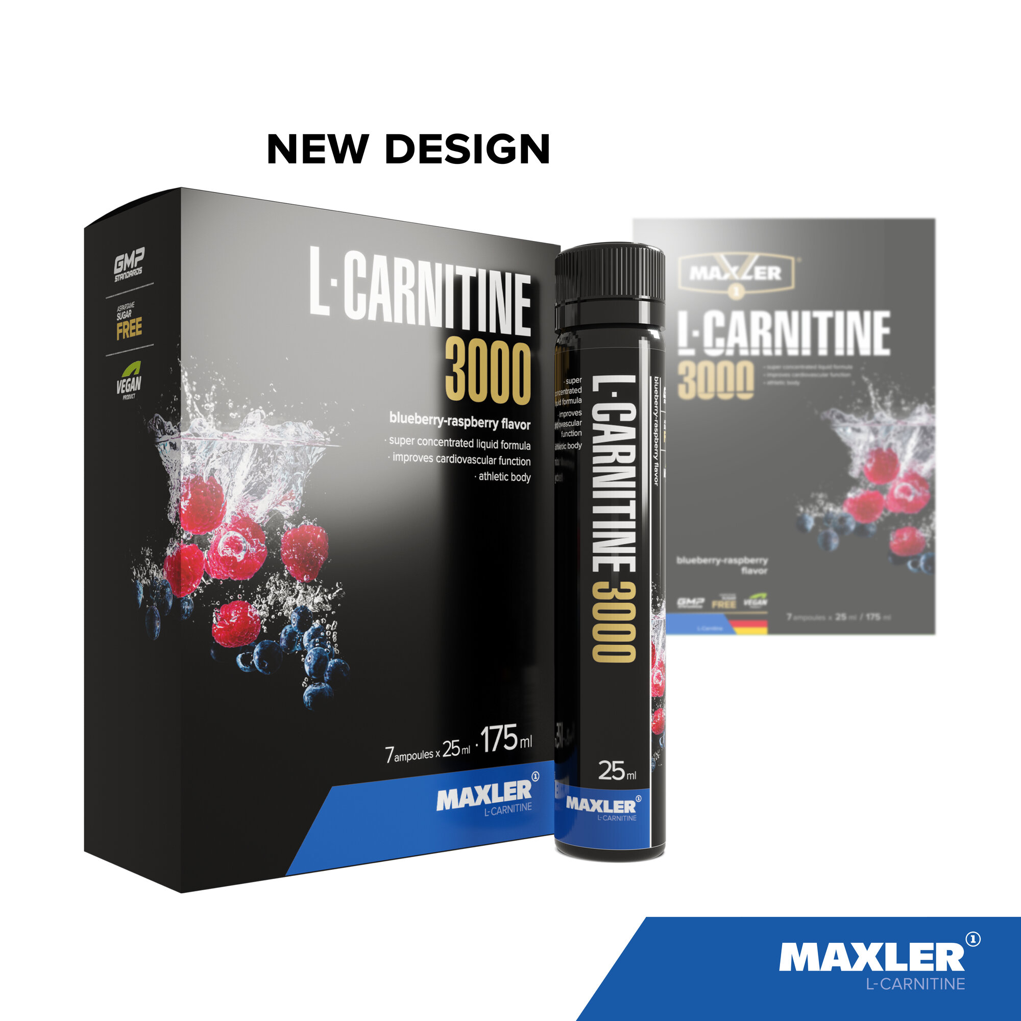 Купить Карнитин Maxler L-Carnitine 3000 со вкусом черника-малина, 7х25мл, Концентрированная жидкая формула, 3000 мг в порции