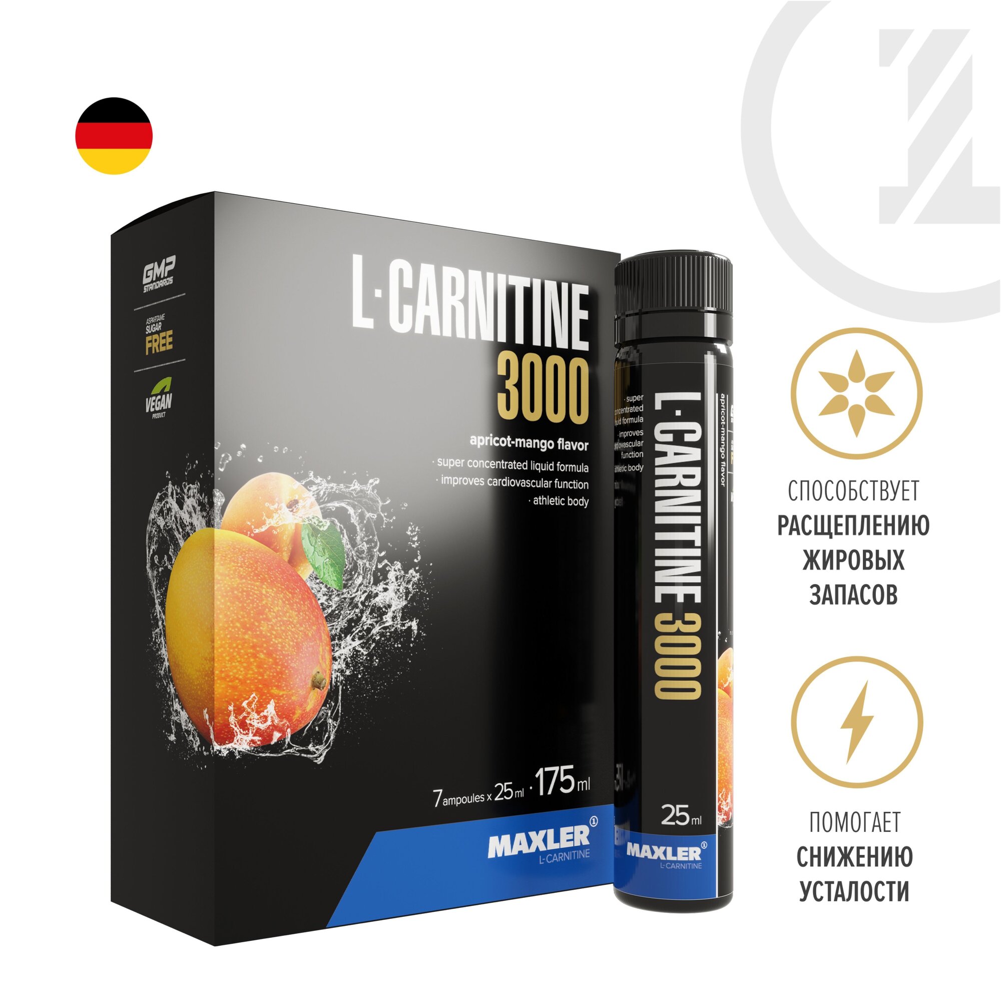 Maxler L-Carnitine 3000 - 14 амп 25 мл (Maxler) Абрикос-манго