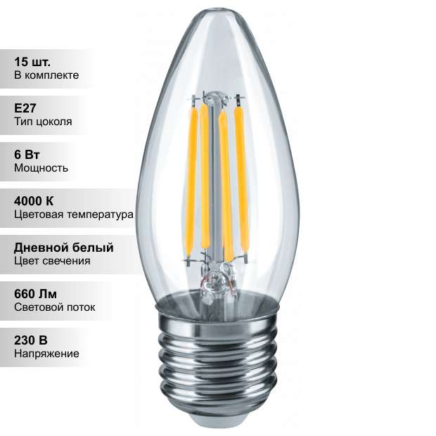 Купить (15 шт.) Светодиодная лампочка Navigator C35 6Вт 230В 4000K E27