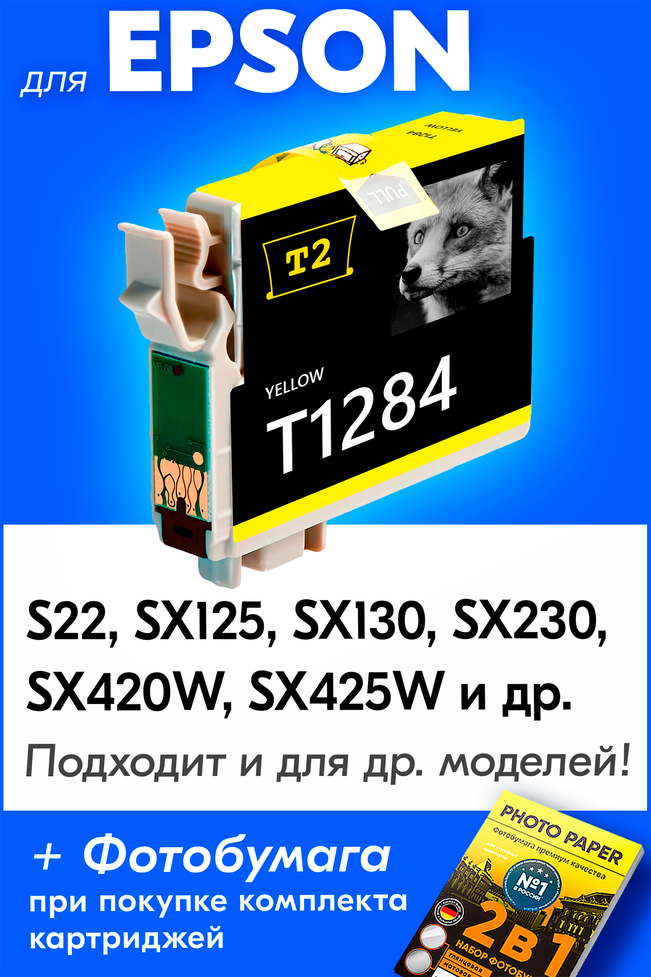 T2 Расходные материалы C13T12844010 Картридж IC-ET1284 для EPSON Stylus S22 SX125 SX130 SX420W Office BX305F желтый с чипом