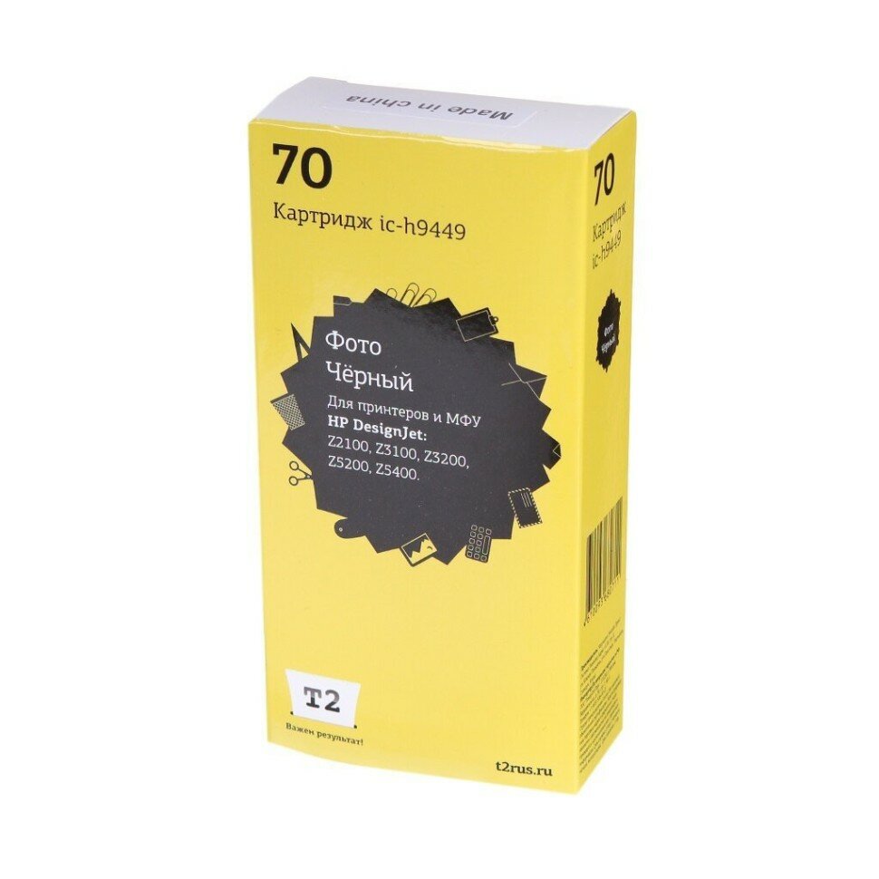 Струйный картридж T2 IC-H9449 № 70 для HP Designjet Z2100/Z3100/Z3200/Z5200/Z5400, черный фото, с чипом, пигментный, 130мл.