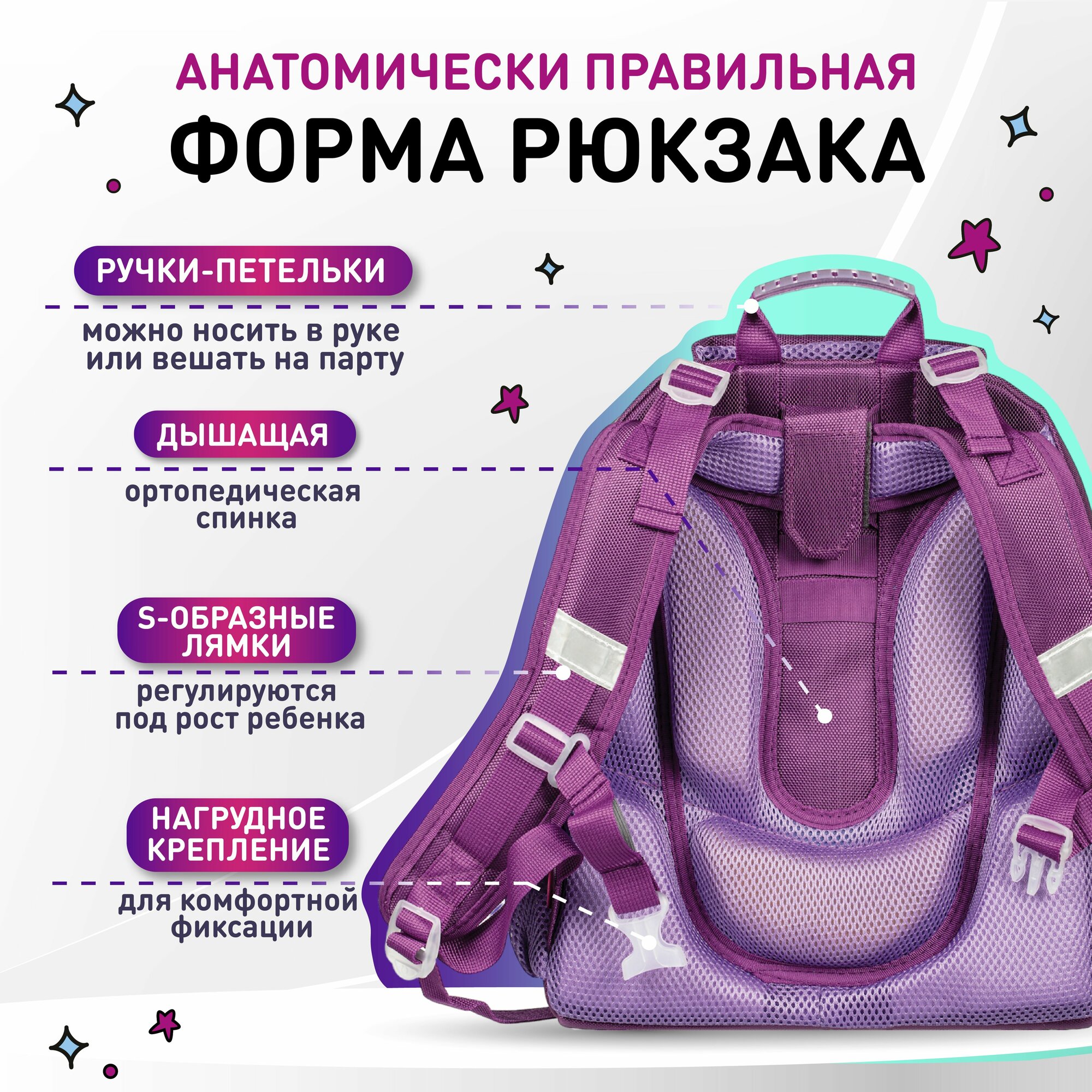 Ранец №1School Basic Bunny сиреневый, 2 отд., эргоном. Cпинка №1 School 1329641