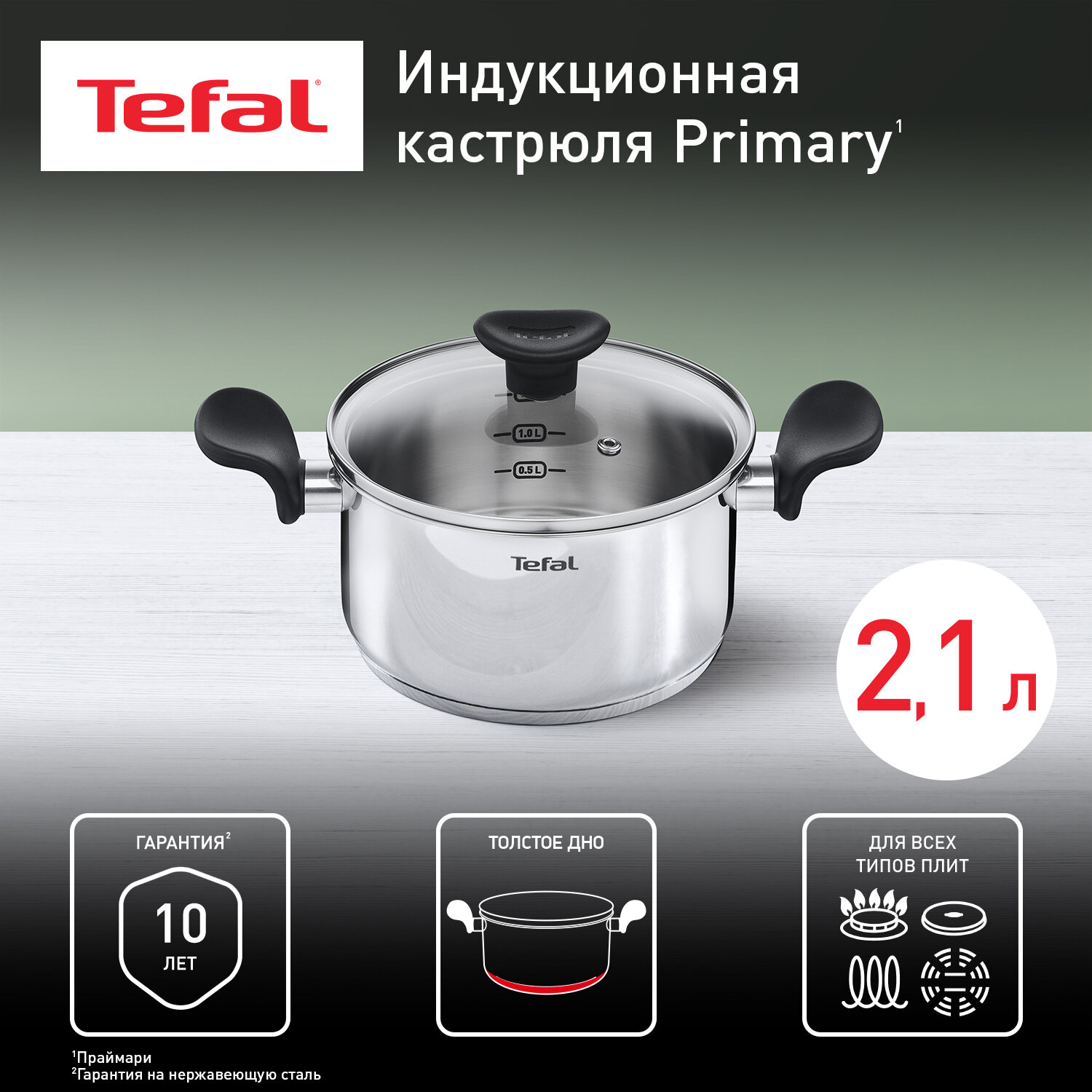 Кастрюля Tefal Primary, нержавеющая сталь, с крышкой, 2,1 л, 18 см