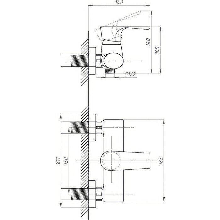 Смеситель для душа Профсан Элит ПСМ-100-4, однорычажный, хром